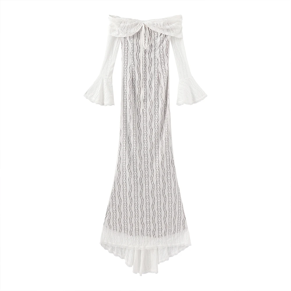 Victoria’s Vouge White Off The Shoulder Autumn Bodycon Dress 2025 Long Sleeve Elegant Lace Maxi Dress Wedding Guest Dress for Women