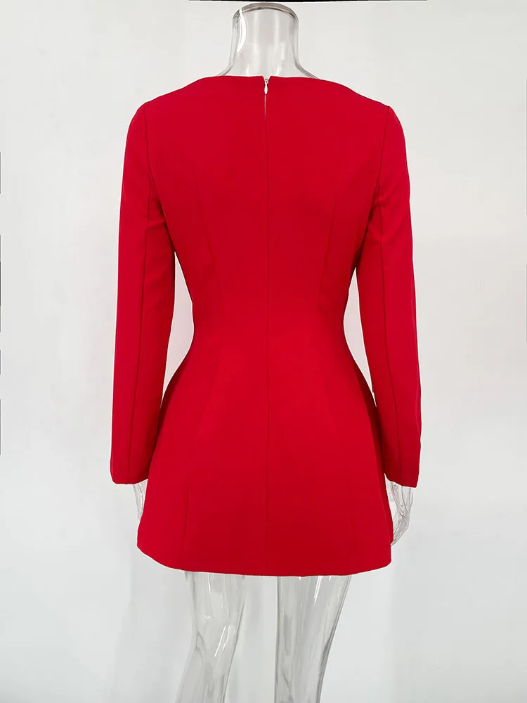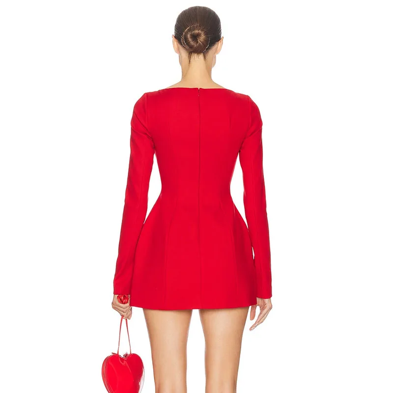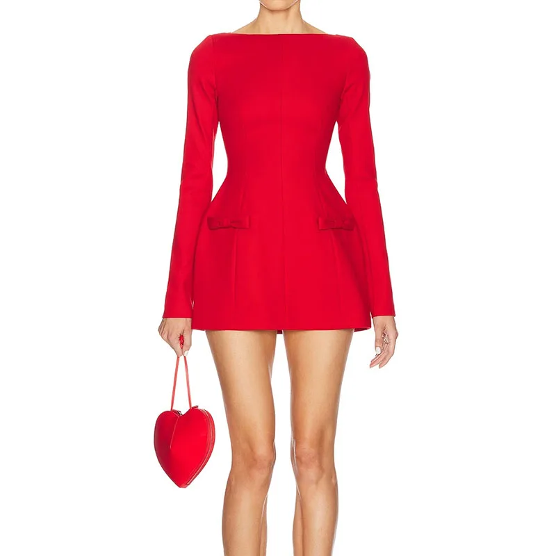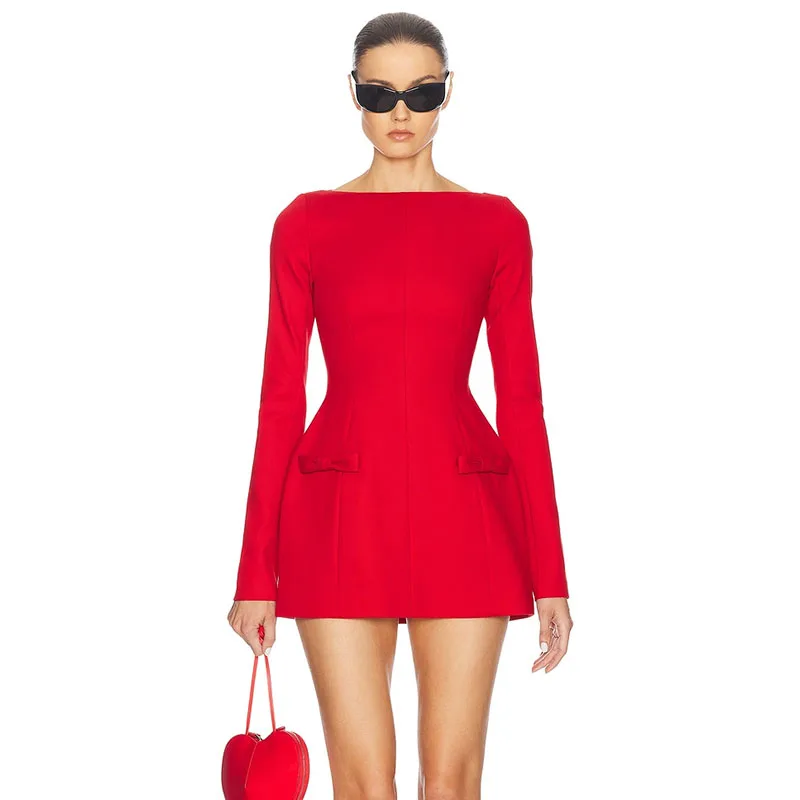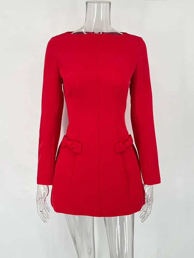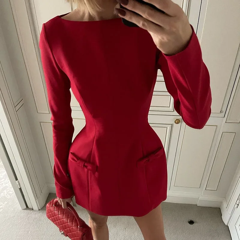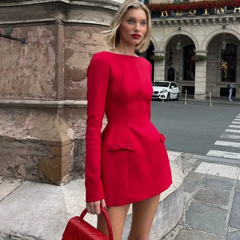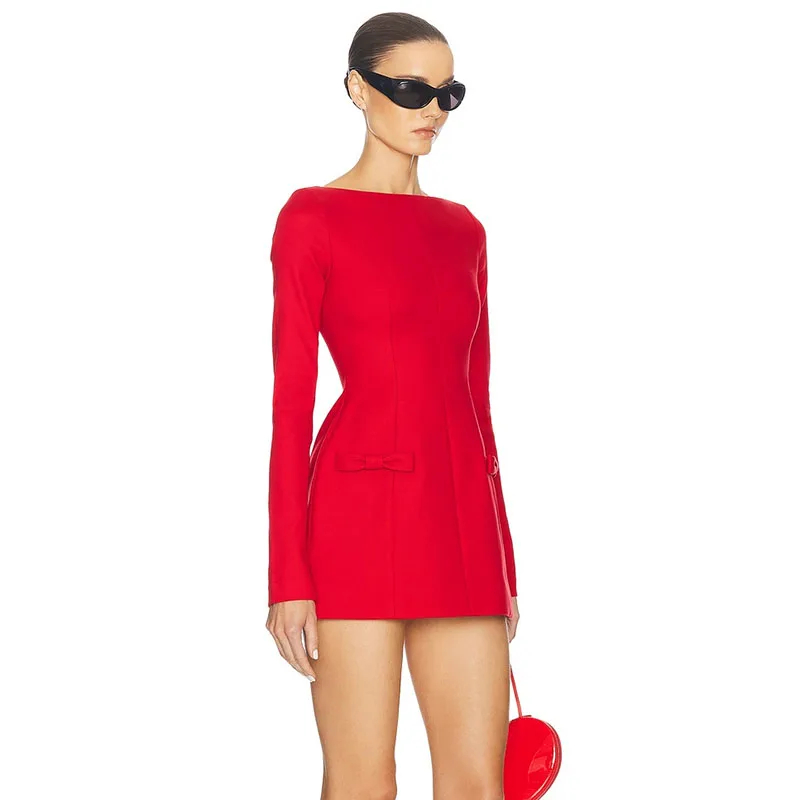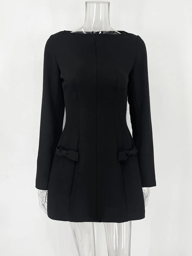 Victoria’s Vouge Bows Splice Long Sleeve Mini Dress Elegant Office Woman Solid Bodycon Club Party Dresses 2024 Autumn High Waist Fashion