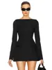 Victoria’s Vouge Bows Splice Long Sleeve Mini Dress Elegant Office Woman Solid Bodycon Club Party Dresses 2024 Autumn High Waist Fashion