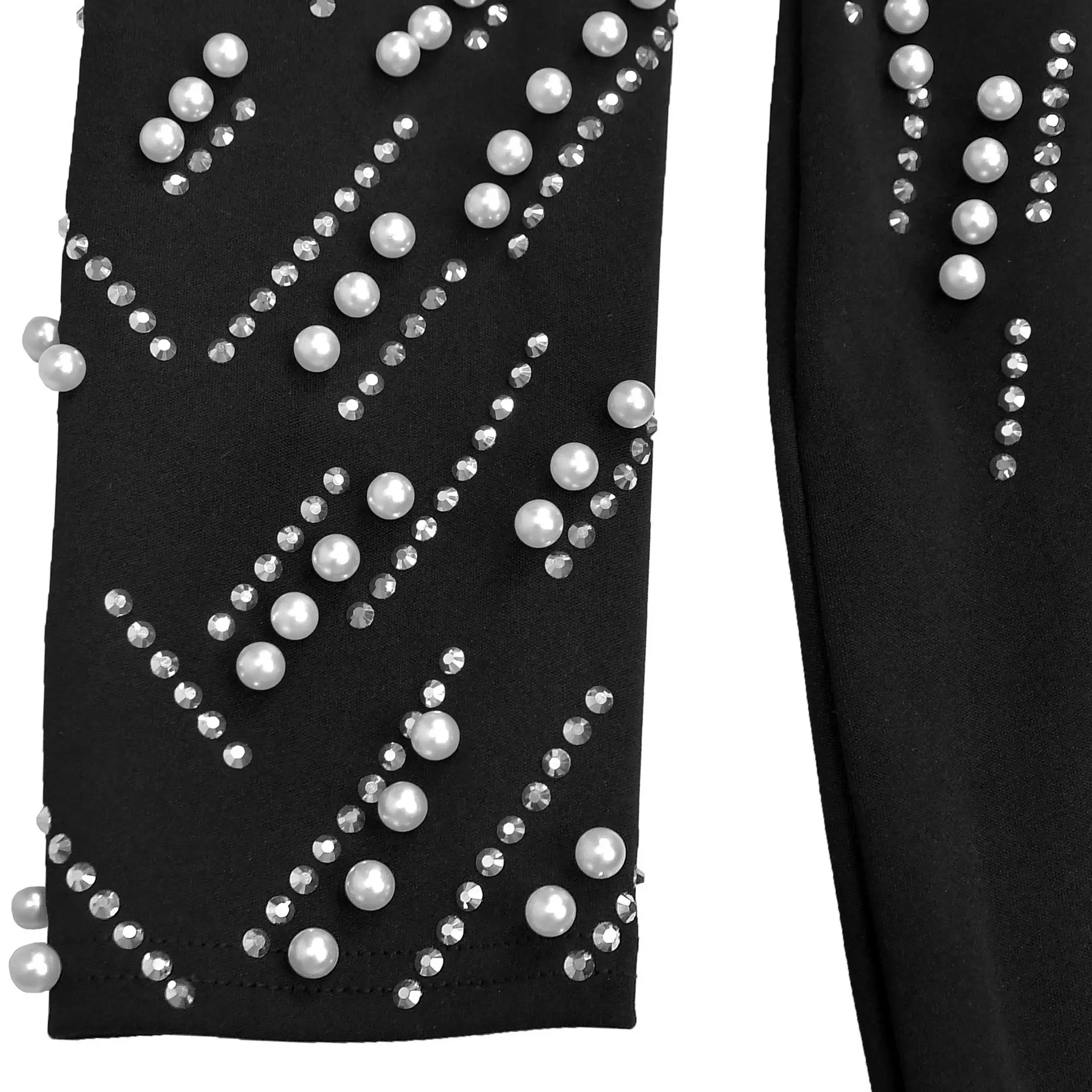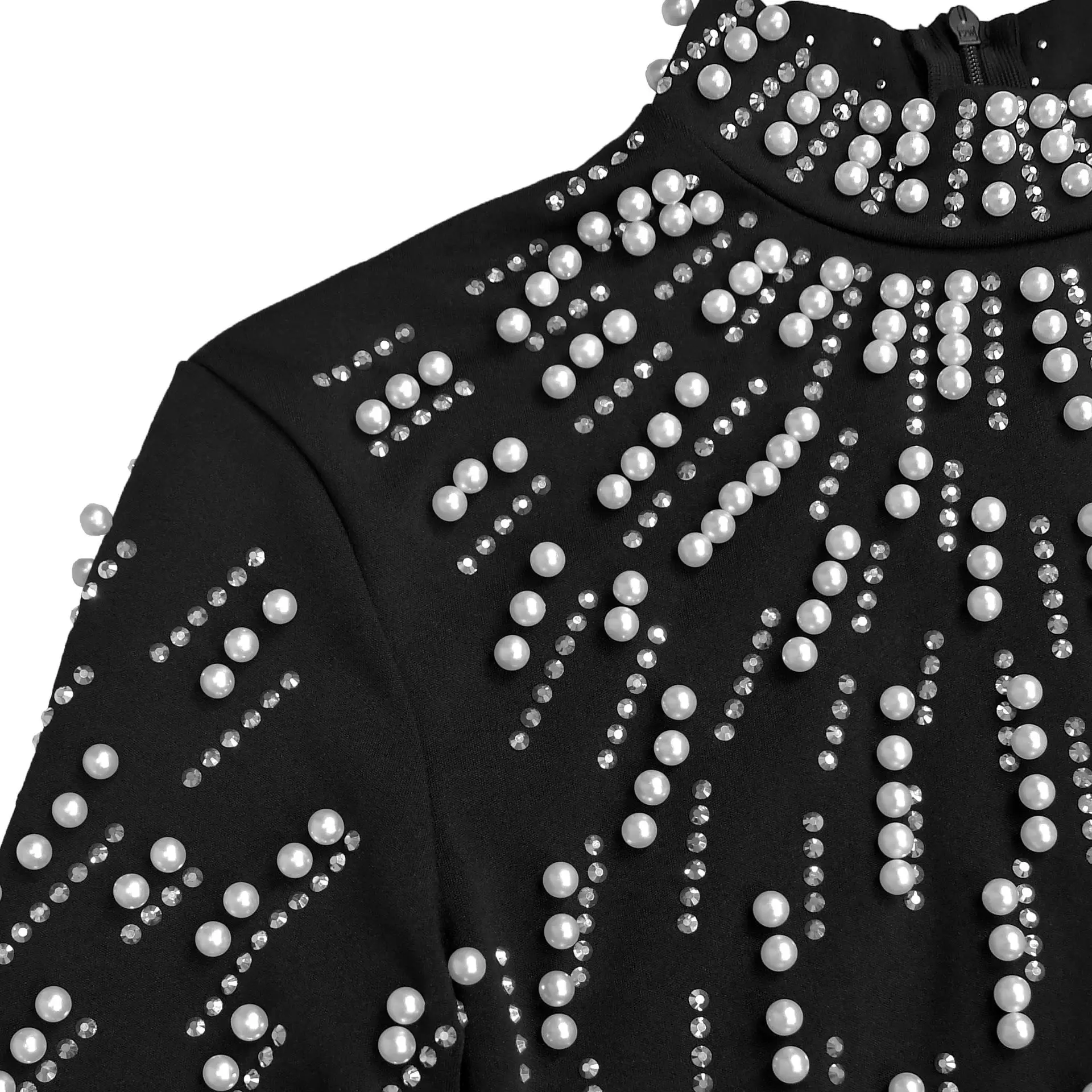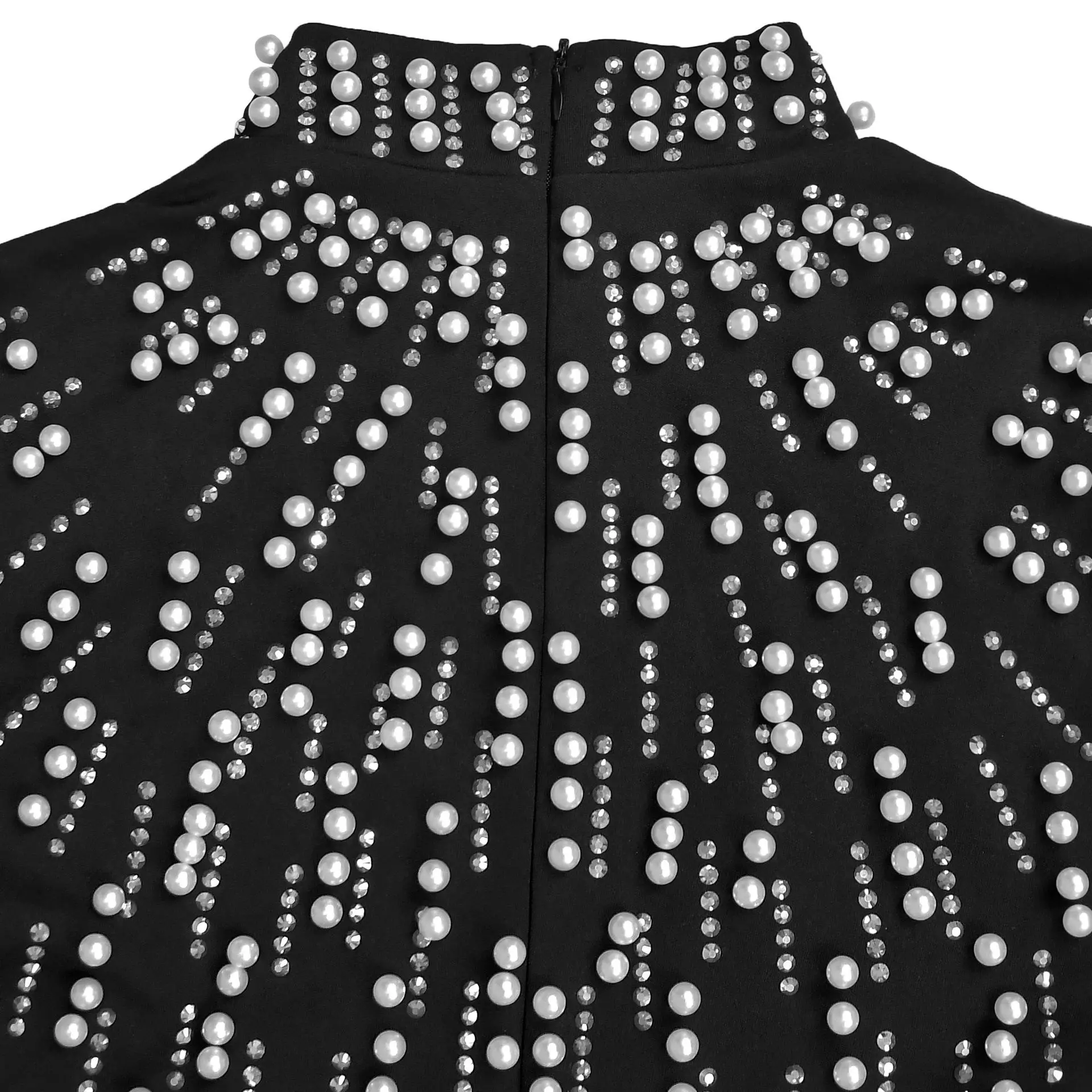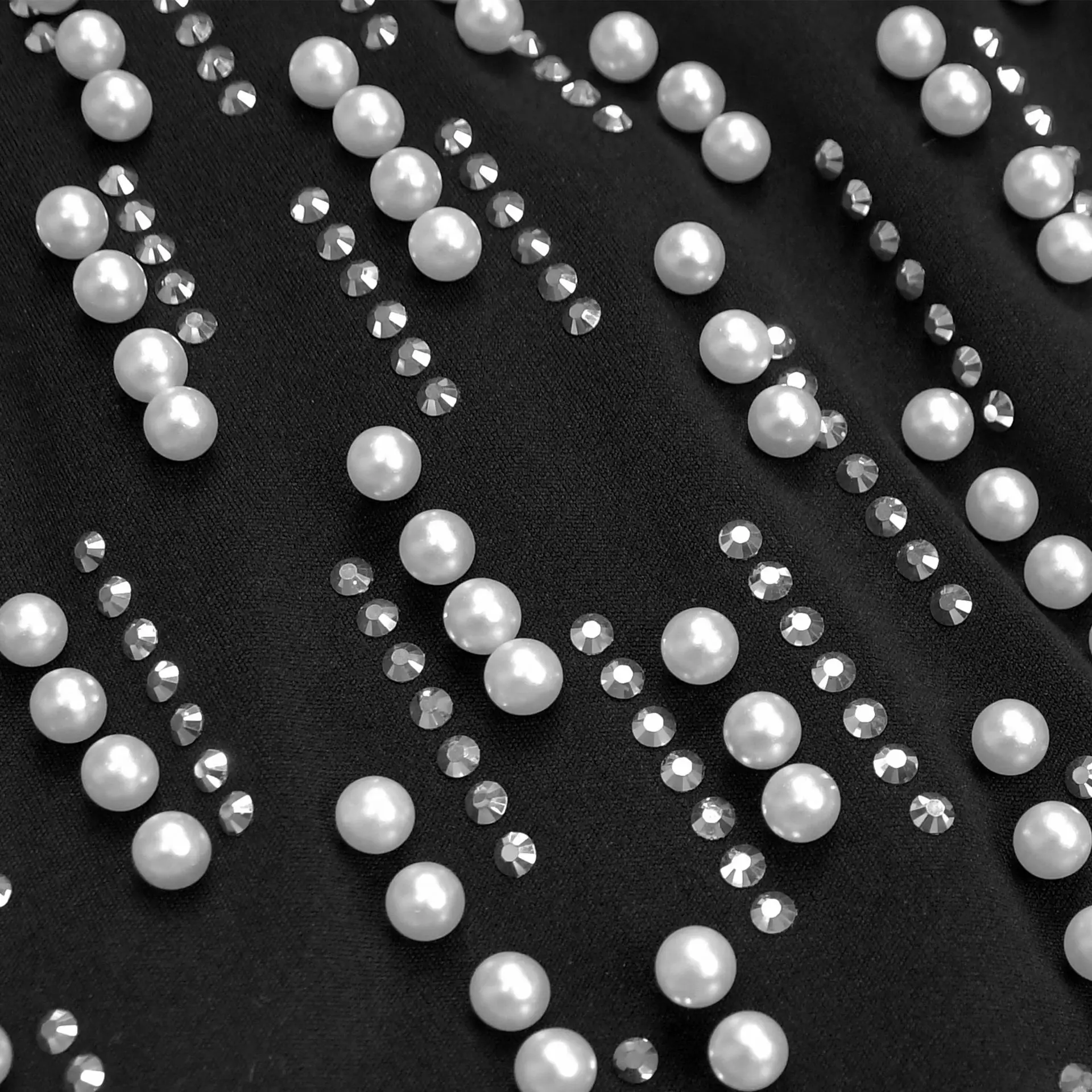 Victoria’s Vogue Elegant Party Diamond Pearl Long Bodycon Dress Women O Neck Long Sleeve Glitter Club Evening Black Sheath Maxi Dress