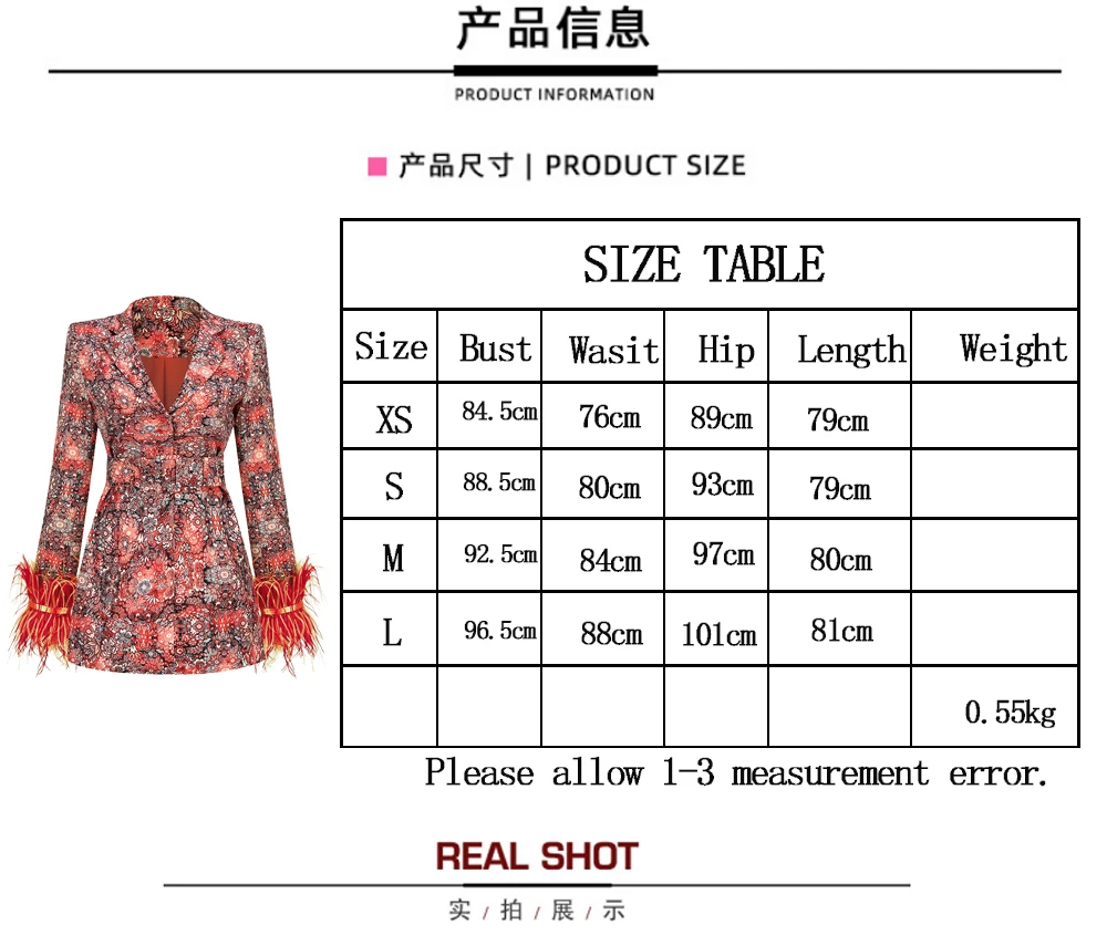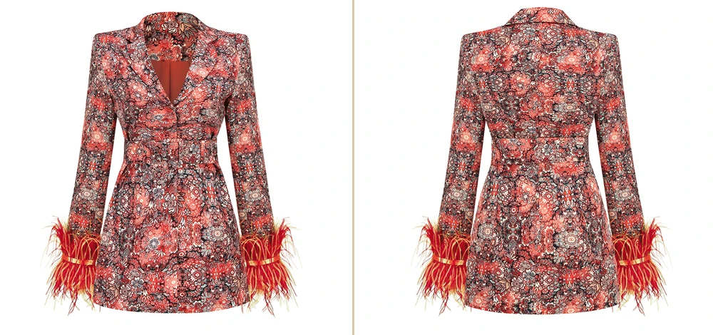 Victoria’s Vogue Floral Suit Collar Waist Decorative Belt Elegant Dress, Women’s Fitted Cuff Decorated Feather Party Dress