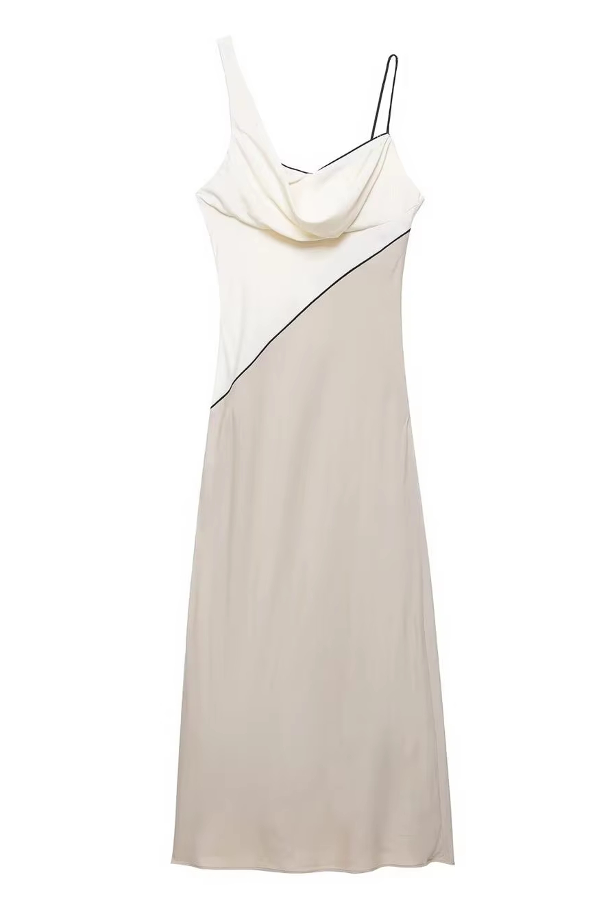 Victoria’s Vogue Elegant Women Patchwork Slim Strap Dress 2025 Summer Pile Collar Sleeveless Beach Party Dress Sexy Asymmetrical Midi Dress