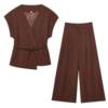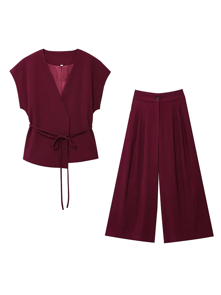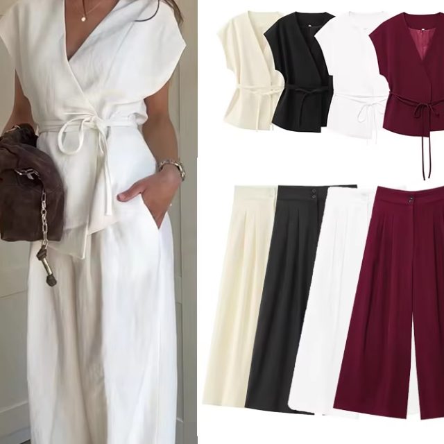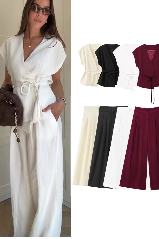 Victoria’s Vogue Fashion Women’s Trouser Suits Sleeveless V-Neck Top With Belt Straight Pants Sets 2025 Spring Summer Commuter 2 Piece Set