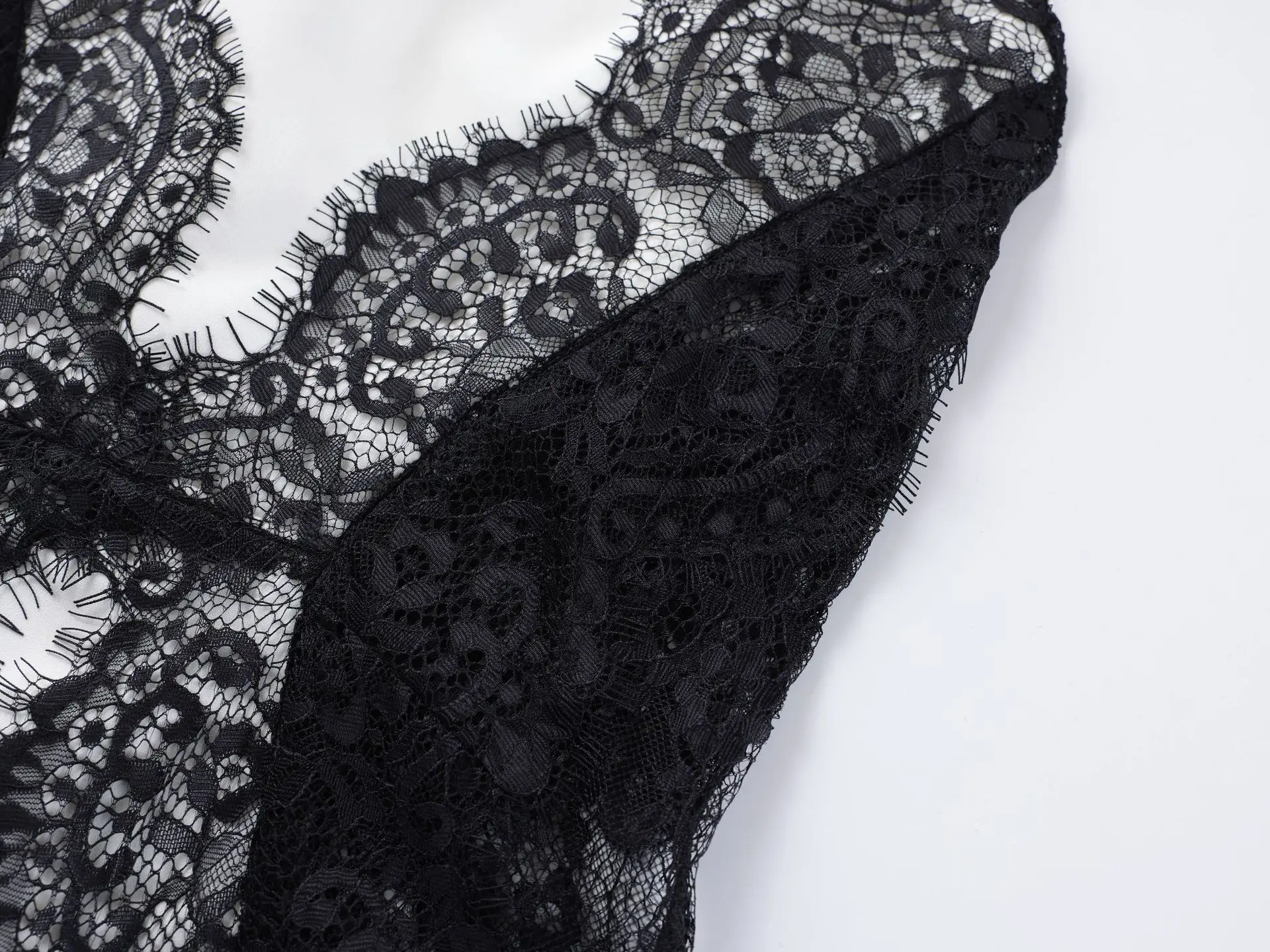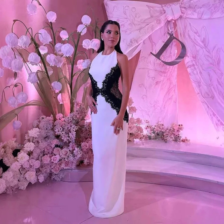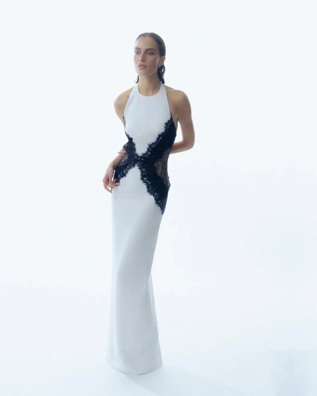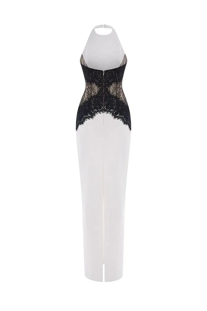 Victoria’s Vogue Sexy Halter Neck Lace Patchwork Long Dress Solid See Through Backless Split Slim Dress Women Luxury Party Evening Dress