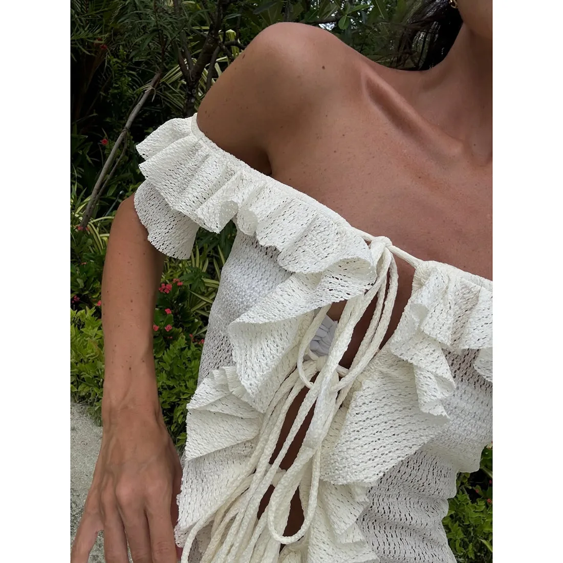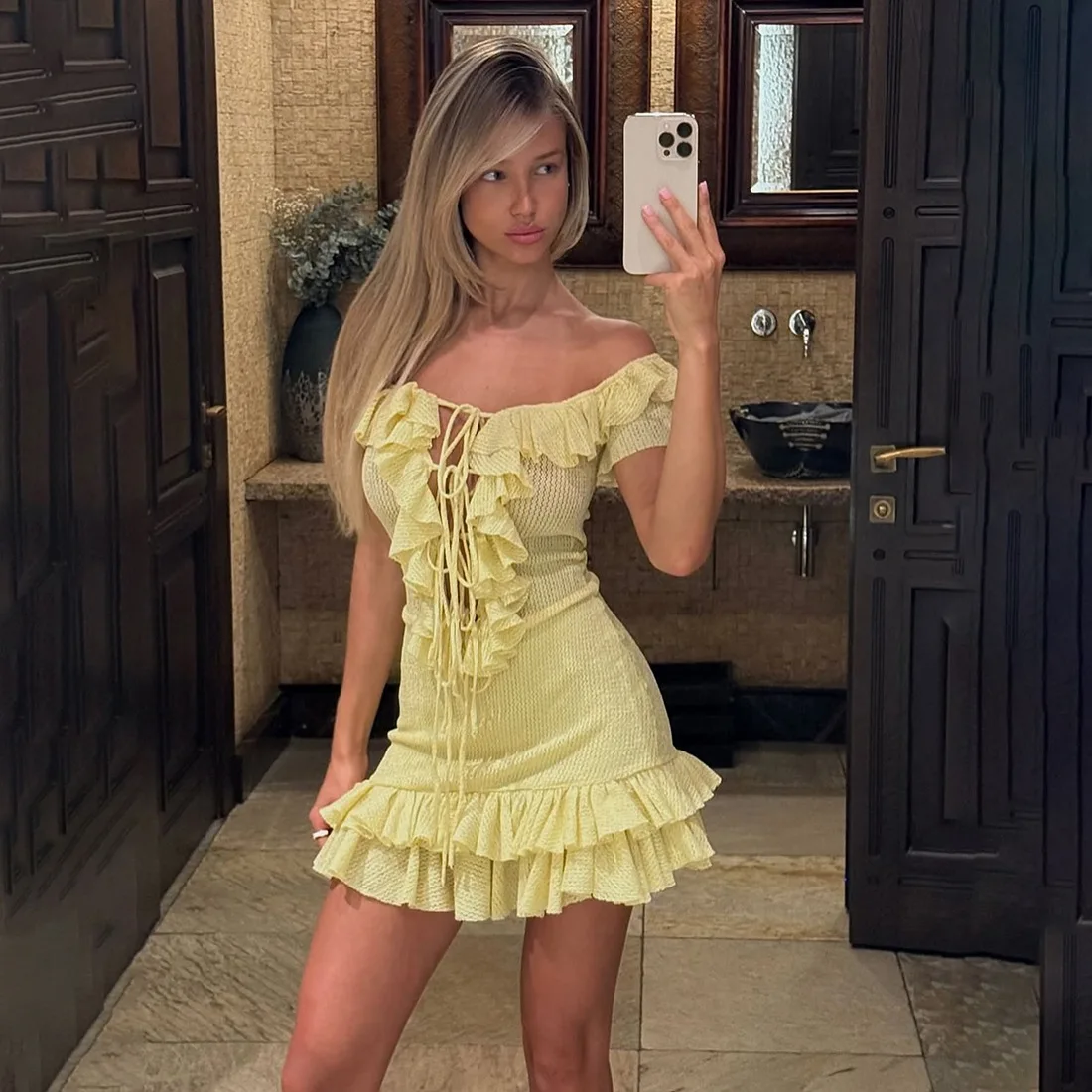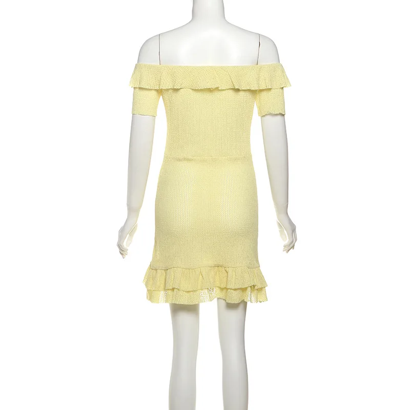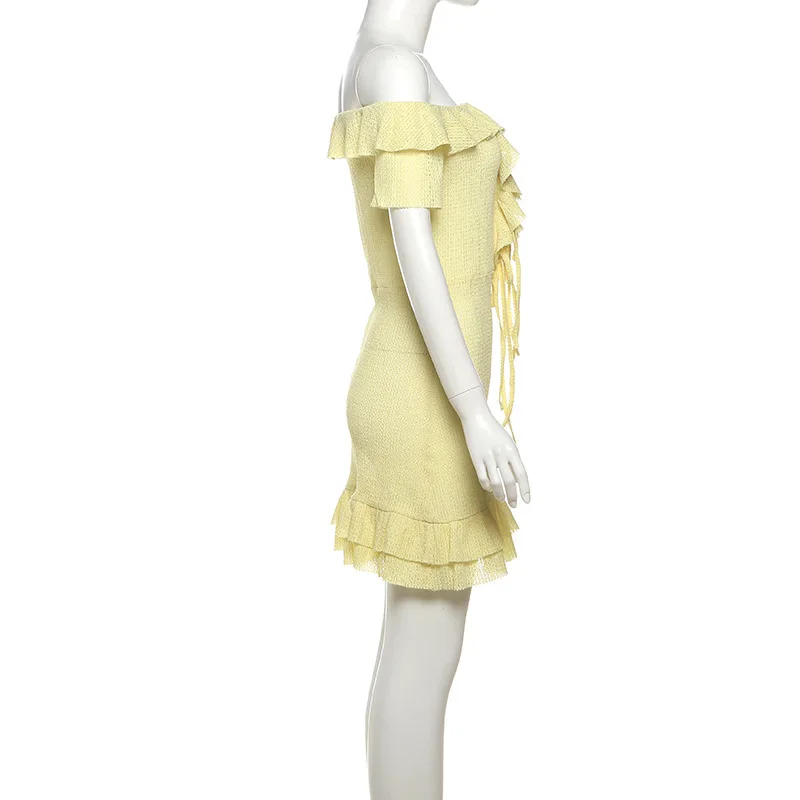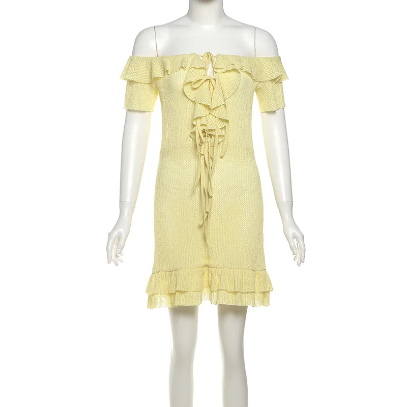 Victoria’s Vogue Sexy Off-the-Shoulder Dress Fashiona Hollow Out Ruffled Pleated Lace-up Dress Elegant Party Look Luxurious Women Dress