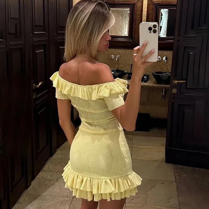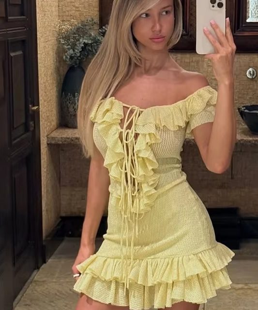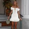 Victoria’s Vogue Sexy Off-the-Shoulder Dress Fashiona Hollow Out Ruffled Pleated Lace-up Dress Elegant Party Look Luxurious Women Dress
