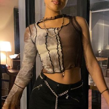 victoria’s vogue 2022 single sleeve patchwork cut out sexy crop top autumn winter women fashion streetwear outfits y2k tshirts