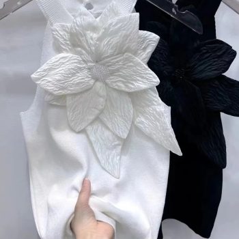 Victoria’s Vogue Black White 3D Diamonds Flower Stitch Sleeveless Knitted Top Slim Fit Halter Vest 2024 Sring Summer Knitwear Sexy Crop Tank Top