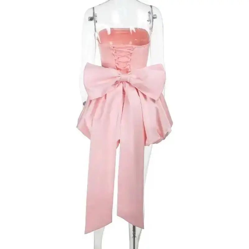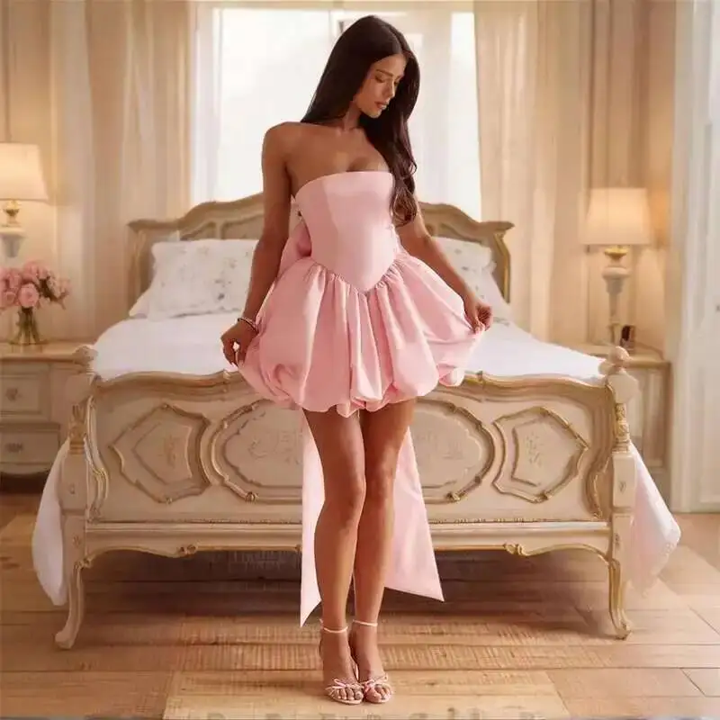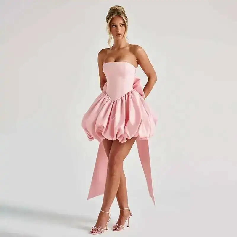 Victoria’s Vogue Backless Sexy Party Dress Women Mini 2025 Spring Summer Dress Waist Wrap A-line Ball Gown Dresses