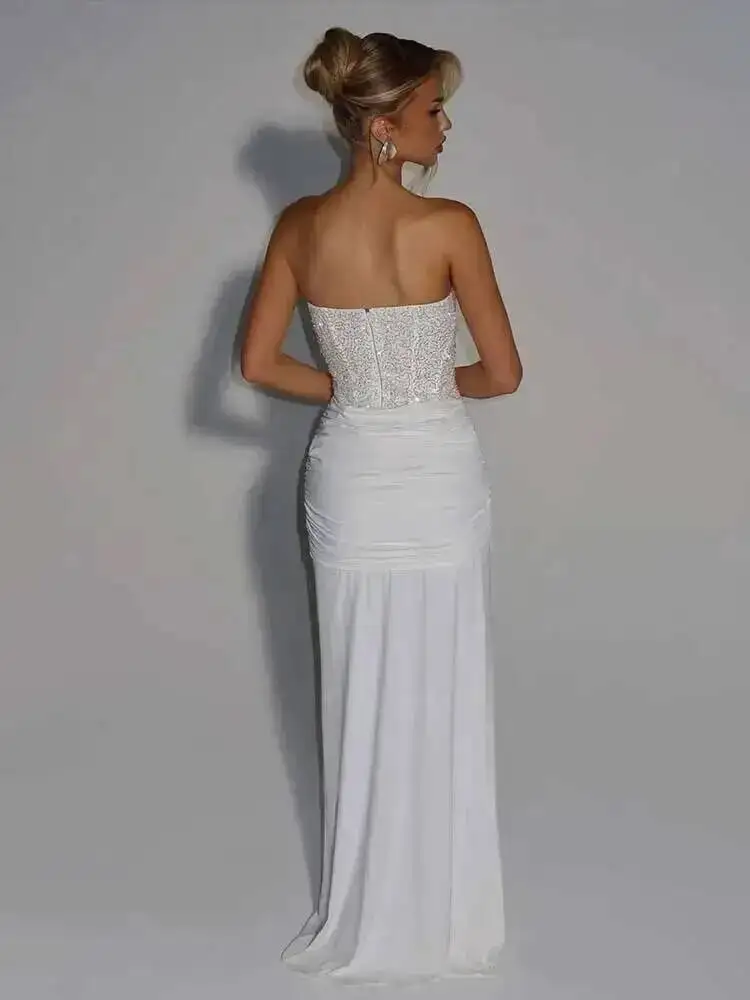 Victoria’s Vogue Slim Bodycon Maxi Long Dress Women Strapless 2025 Summer Dress Ribbon Sequin Nightclub Sexy Party Dresses