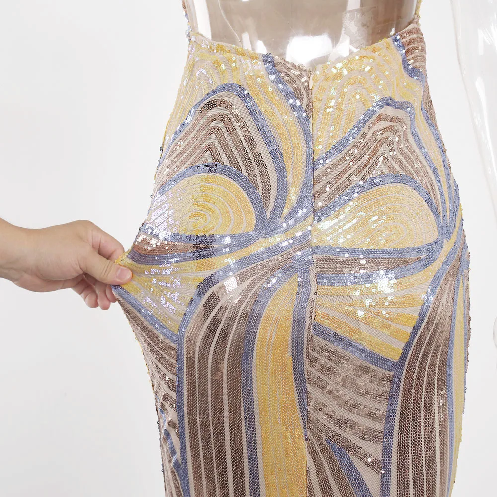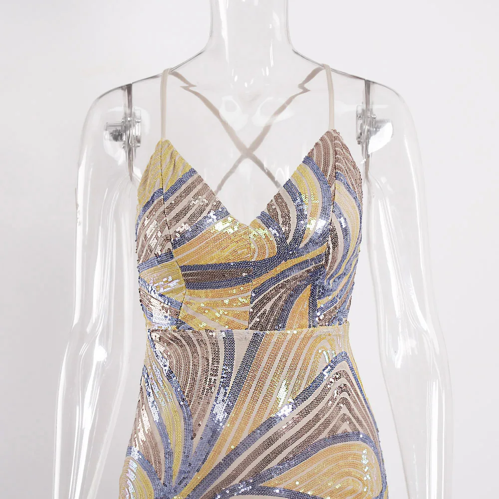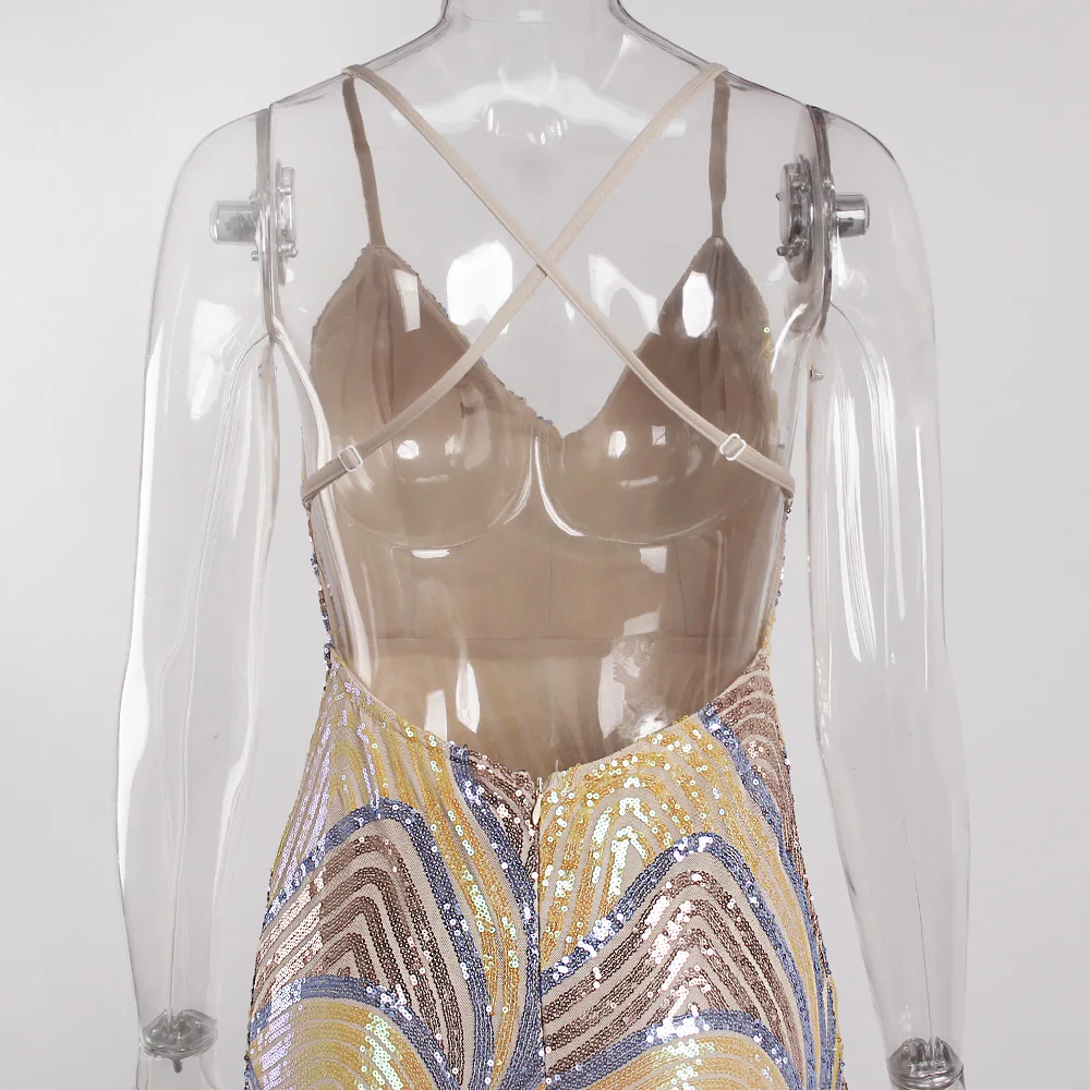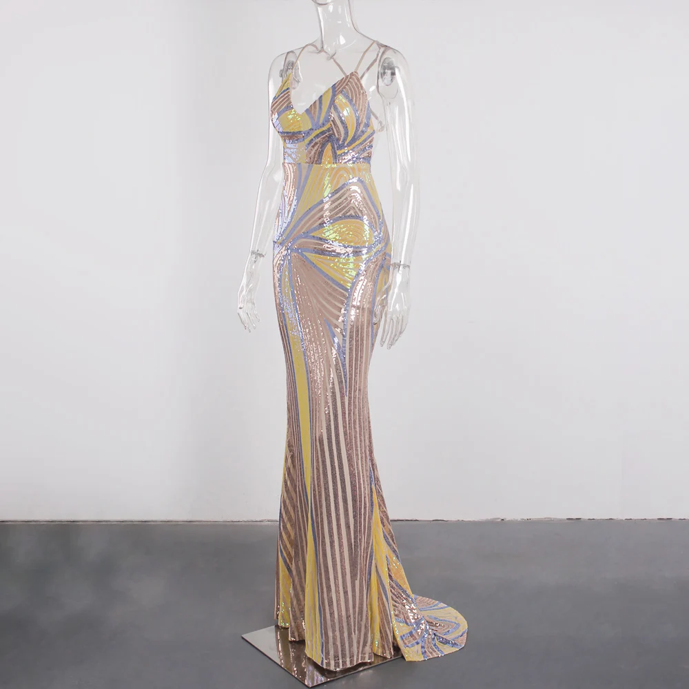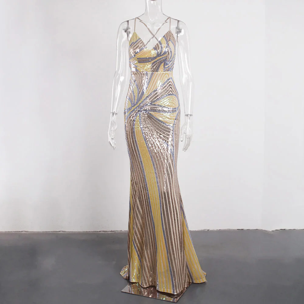 victoria’svogue 2021 V Neck Backless Sequined Maxi Dress Formal Sexy Long Sleeveless Night Evening Party Gown