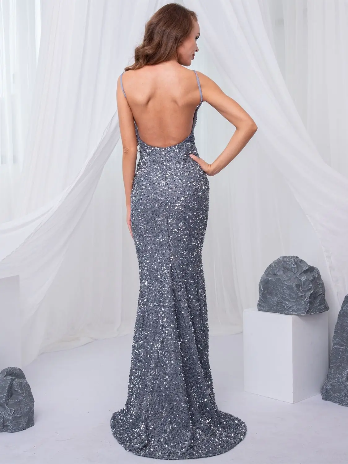 victoria’svogue 2021 V Neck Backless Sleeveless Mermaid Maxi Dress Sexy Evening Party Long Gown Grey Pink