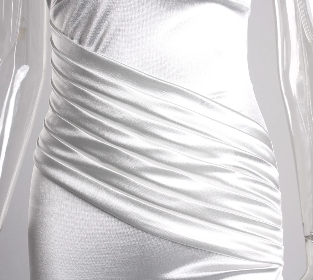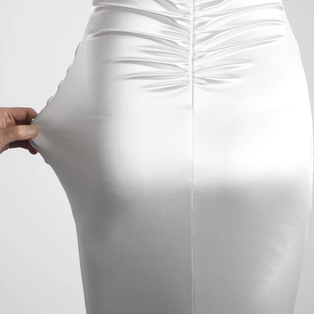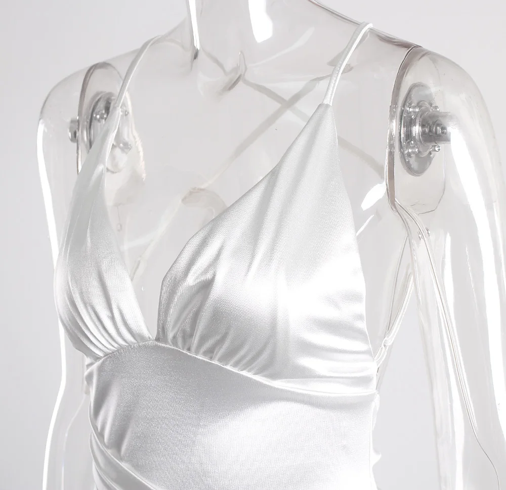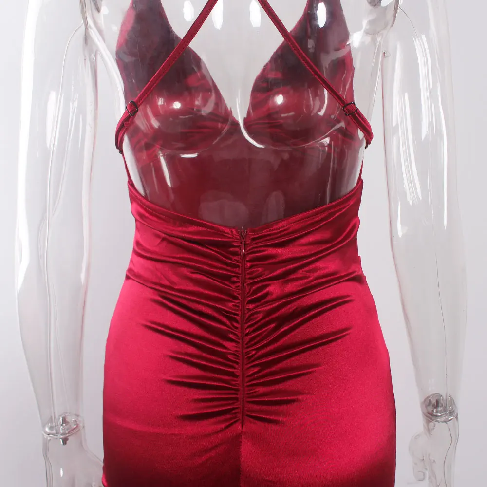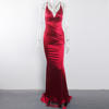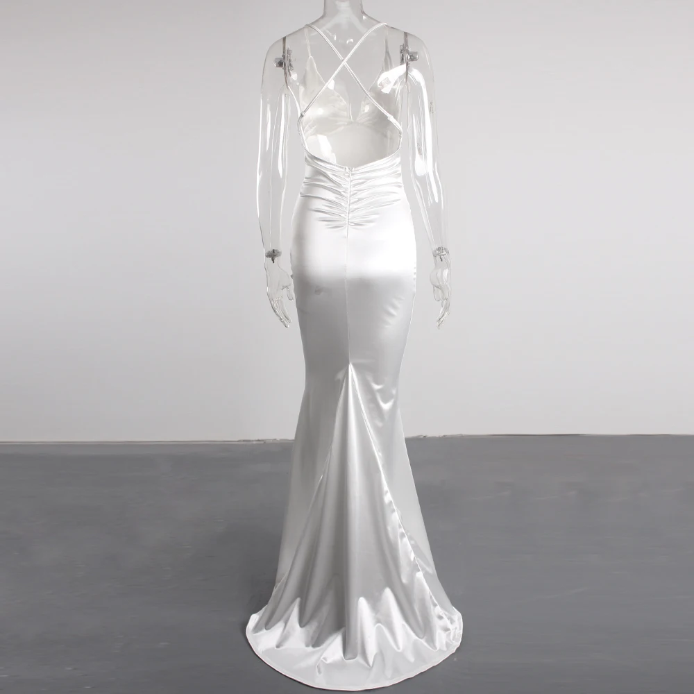 victoria’svogue 2021 V Neck Pleated Satin Summer Dress Sleeveless Ruched Stretch Backless Cross Straps Mermaid Evening Long Night Party Dress
