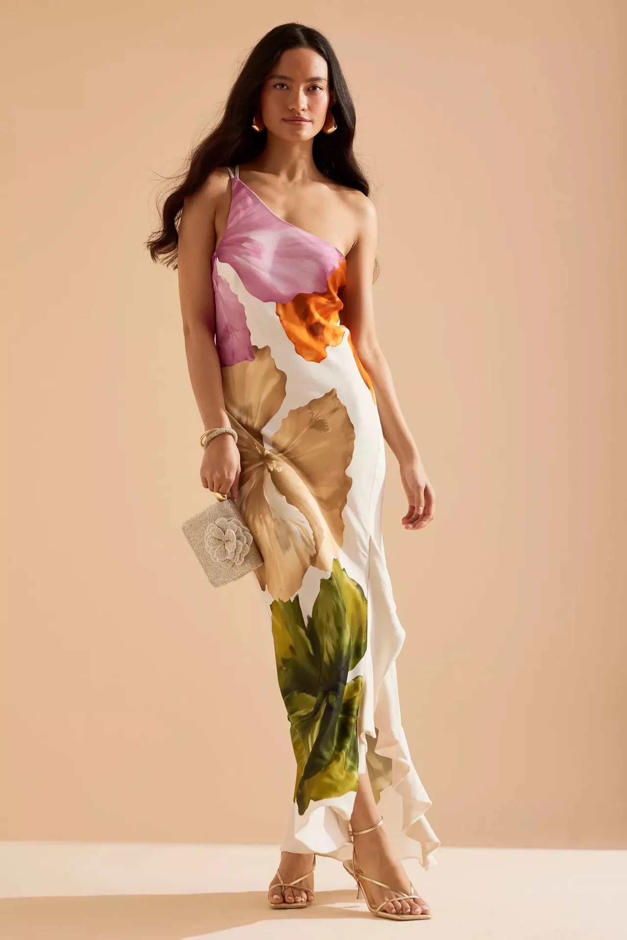 Victoria’s Vogue Fashion Women Printed Curling Edge Long Dresses Irregular One Shoulder Open Fork Gown Women Summer 2025 Party Vestidos