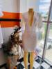 the dress is beautiful more than in the picture but the material is not stretched so I would advise for size up.