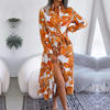 Victoria Vogue 2023 New Women Spring Summer Contrast Floral Polo Collar Lace Up Shirt Dress For Ladies Single Breasted Long Dress