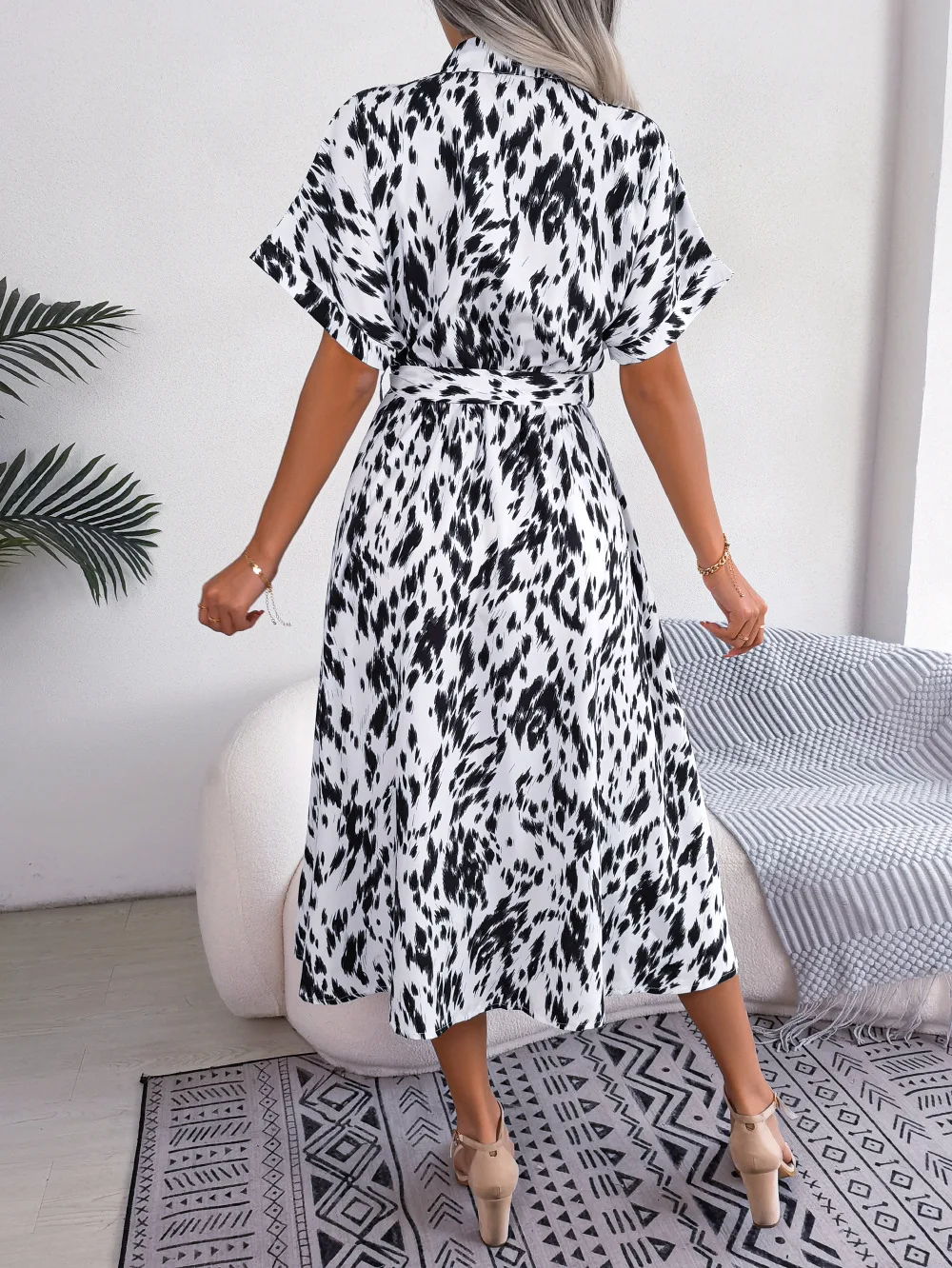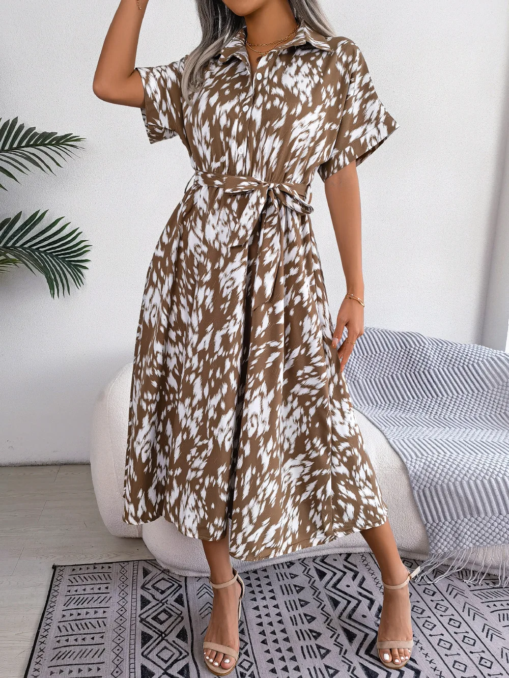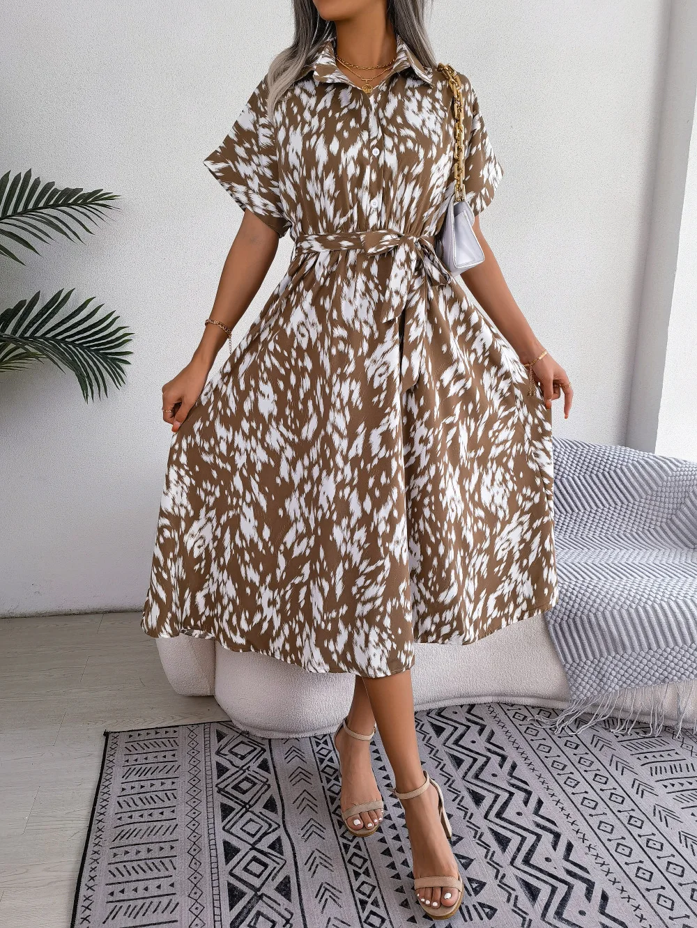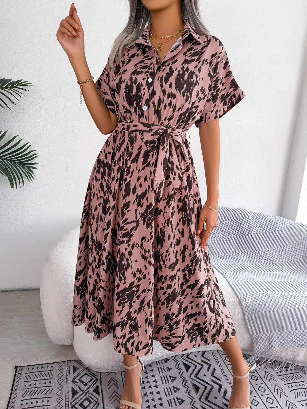 Victoria Vogue 2023 New Women Summer Casual Loose Leopard Lace Up Shirt Dress For Ladies Fashion All Match Chic Dresses