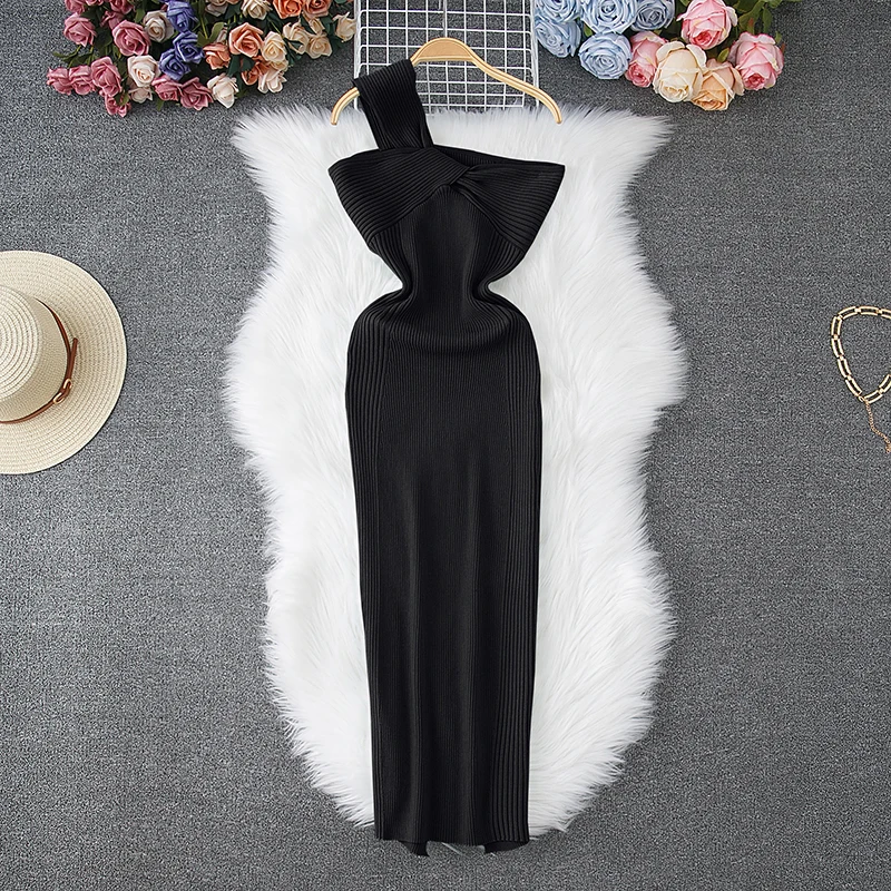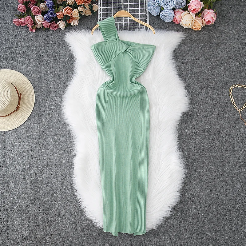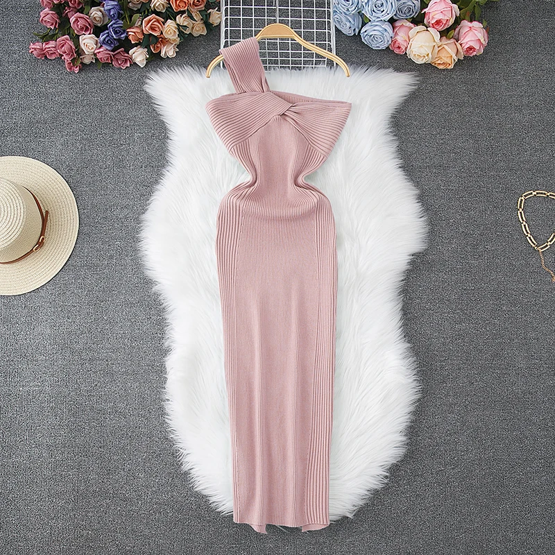 Victoria Vogue Brand Fashion One-Shoulder Knitted Party Dress Women Sleeveless Y2K Knot Bodycon Summer Dress Streetwear Lady Vestidos