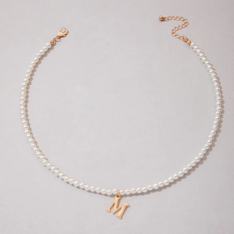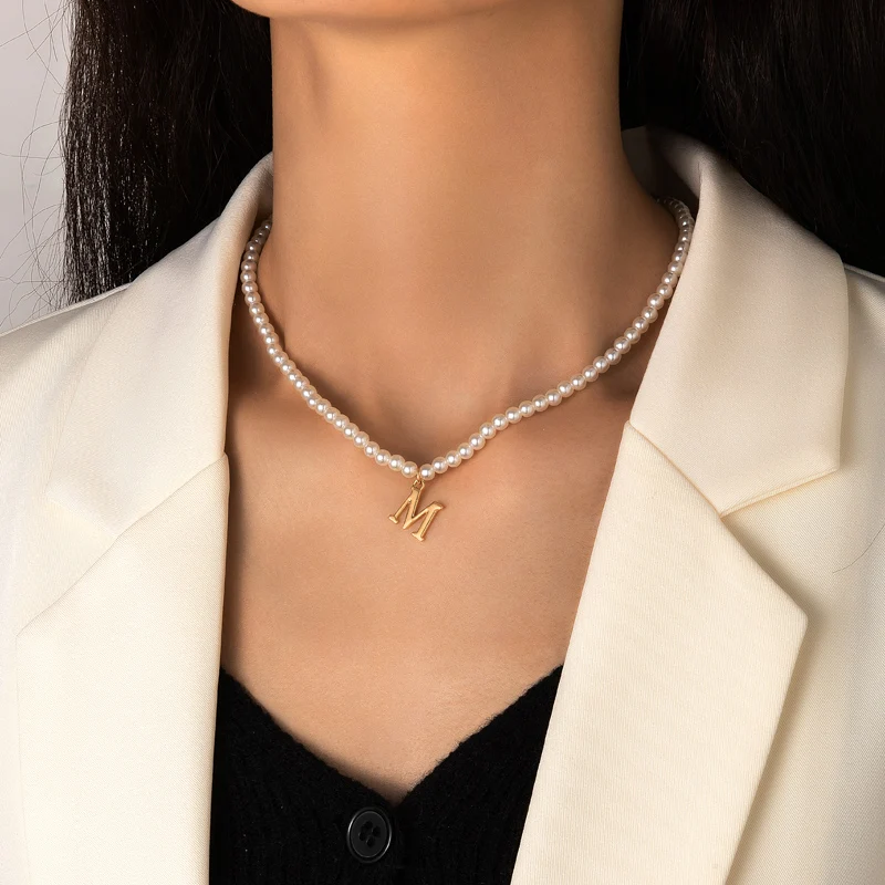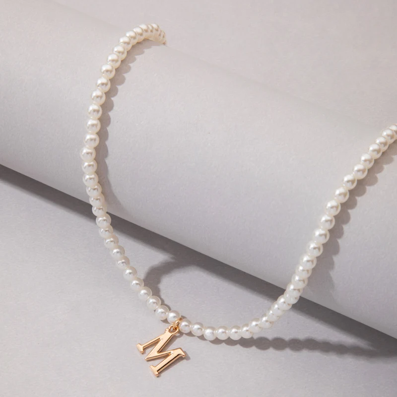 Victoria vogue Elegant Pearl Stone Letter M Pendant Neckalce Classical Handmade Clavicle Chain Choker Party Jewelry Collar