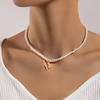 Victoria vogue Elegant Pearl Stone Letter M Pendant Neckalce Classical Handmade Clavicle Chain Choker Party Jewelry Collar