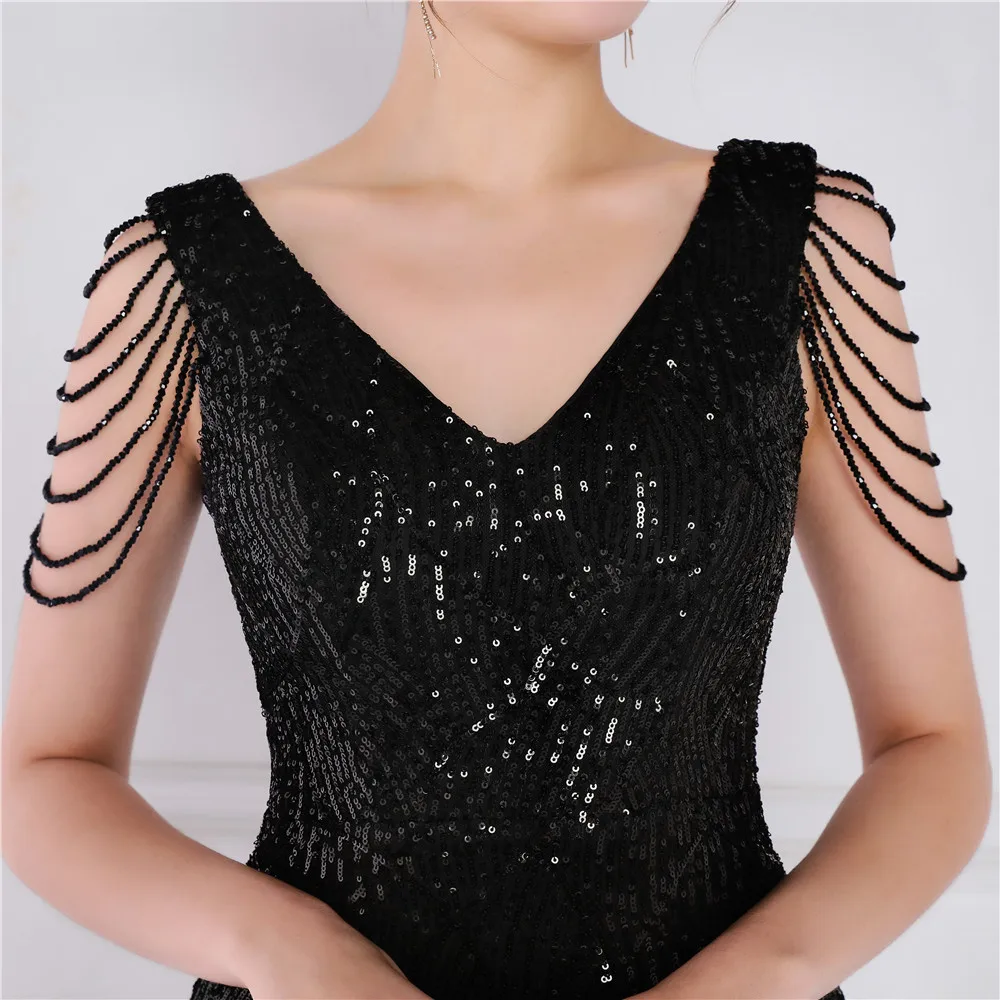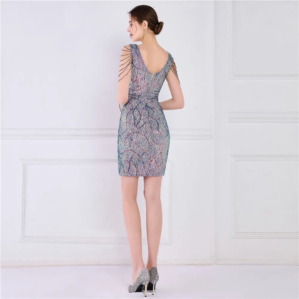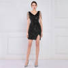 Victoria Vogue Elegant Women Short Evening Dress Sequin Slim Bodycon Party Dresses Black Gold Female Vestidos De Soiree