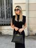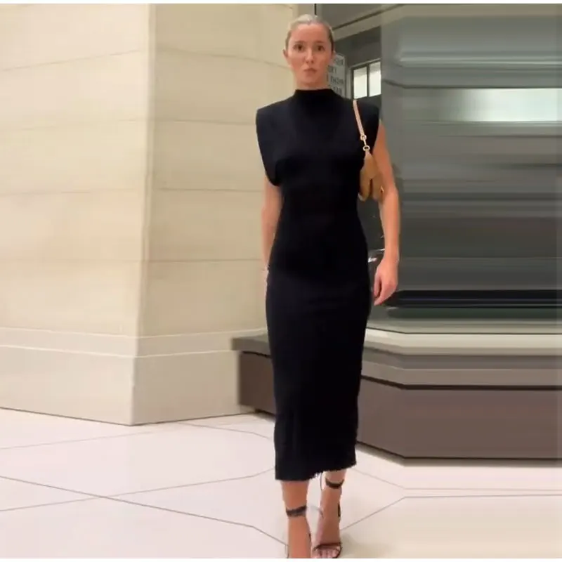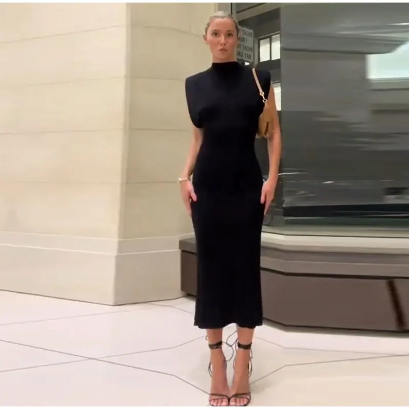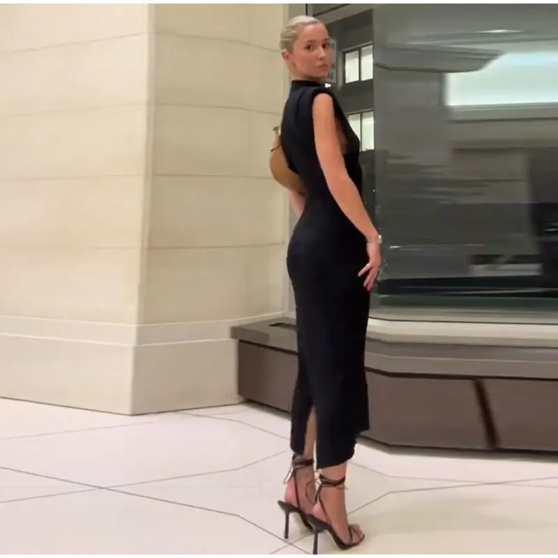 Victoria Vogue Fashion Black O Neck Slim Midi Dresses Women 2023 Sexy Split Sleeveless Bodycon Dress Elegant Office Lady Streetwear Outfits