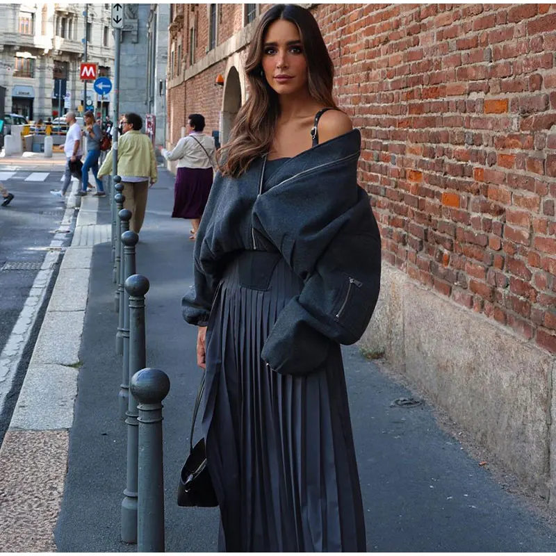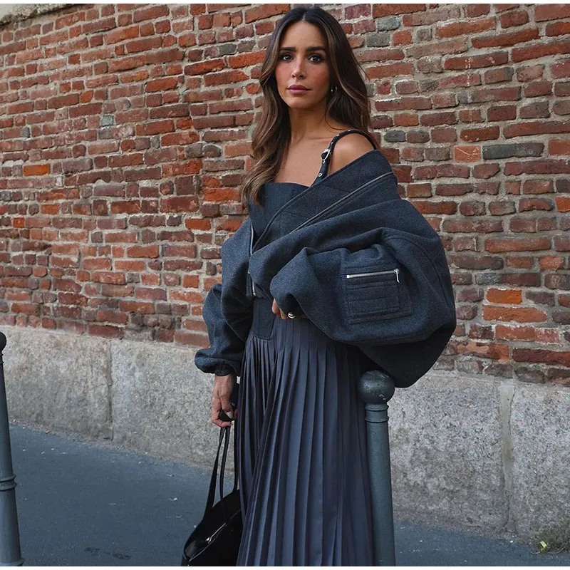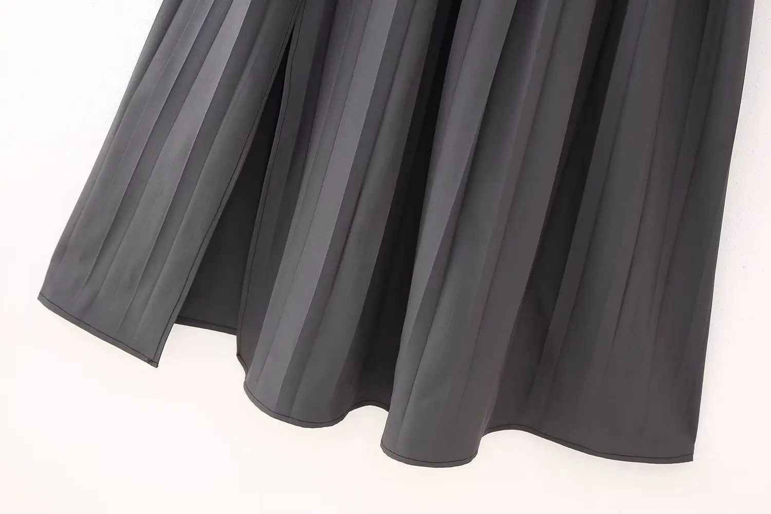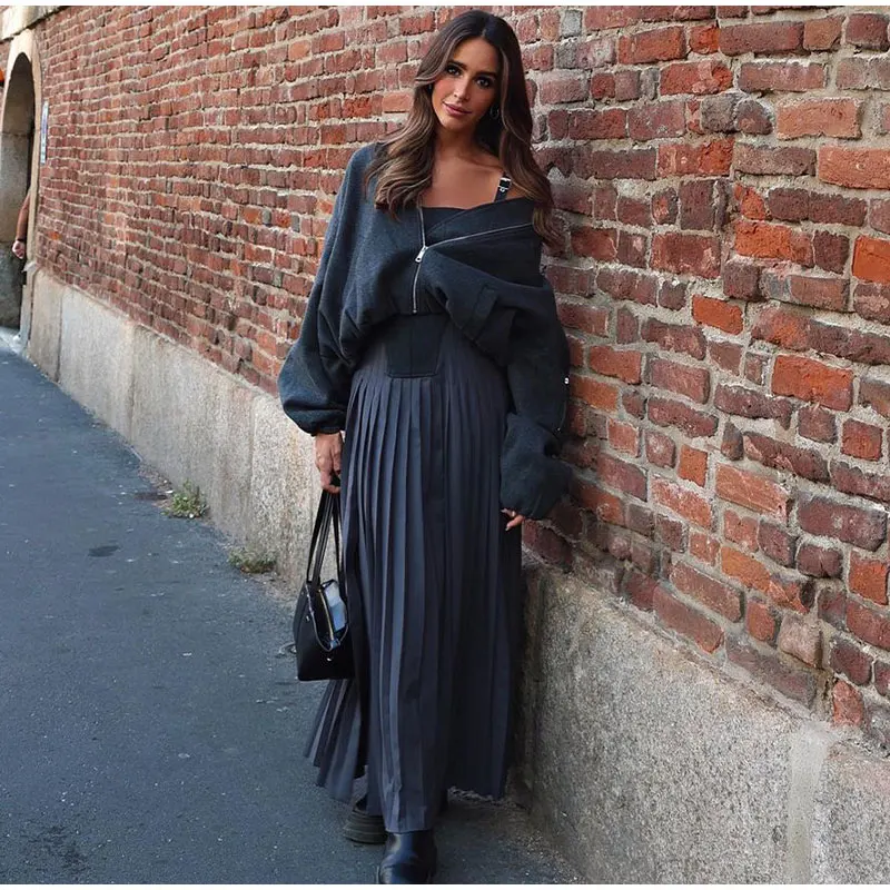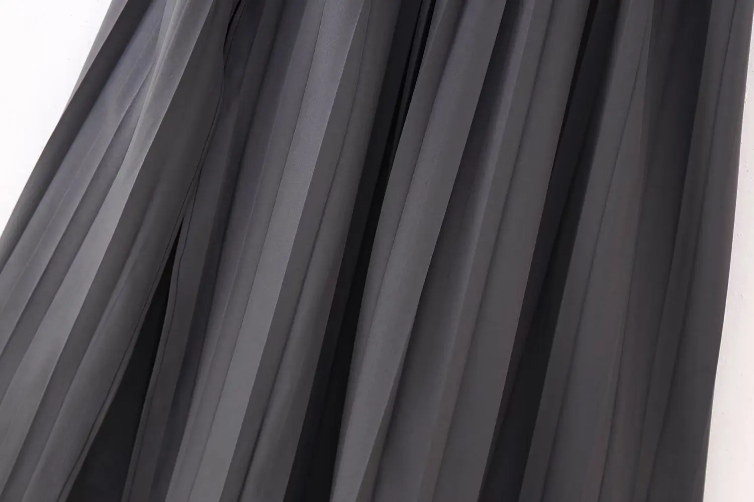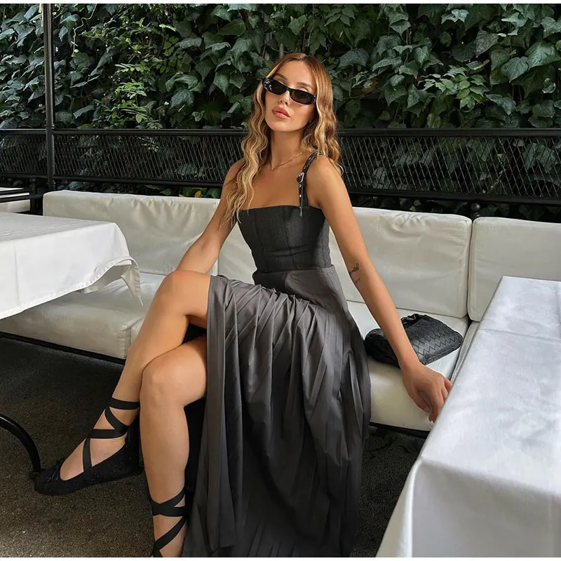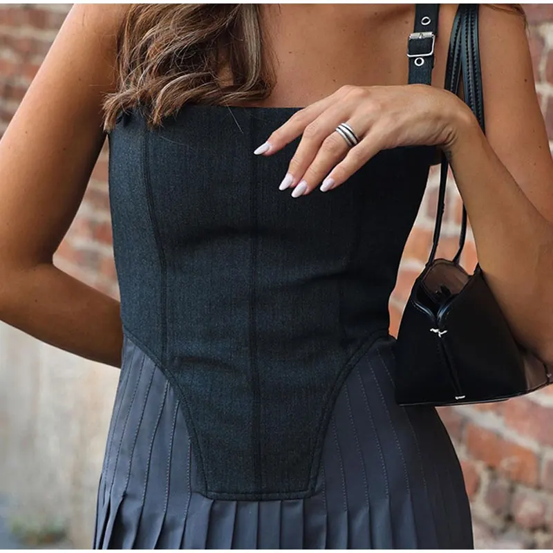 Victoria Vogue Female Sexy Grey Patchwork Spaghetti Strap Dress Fashion Sleeveless Pleated A Line Dresses 2023 Autumn Lady High Street Vestidos