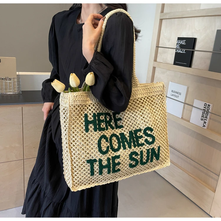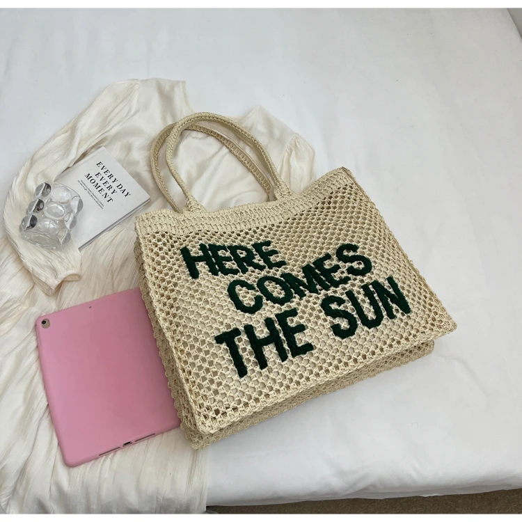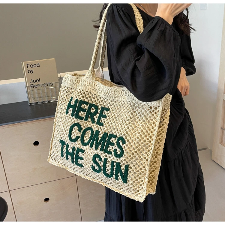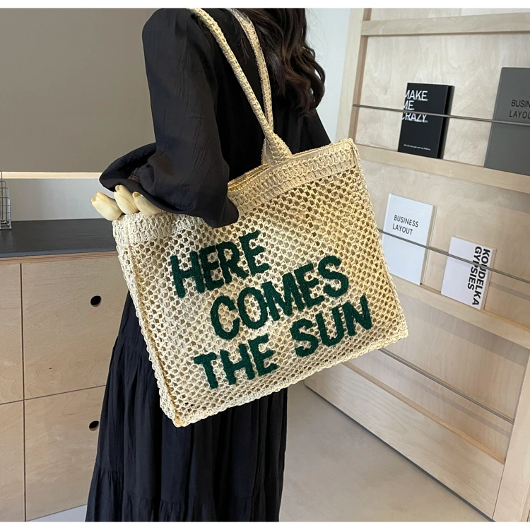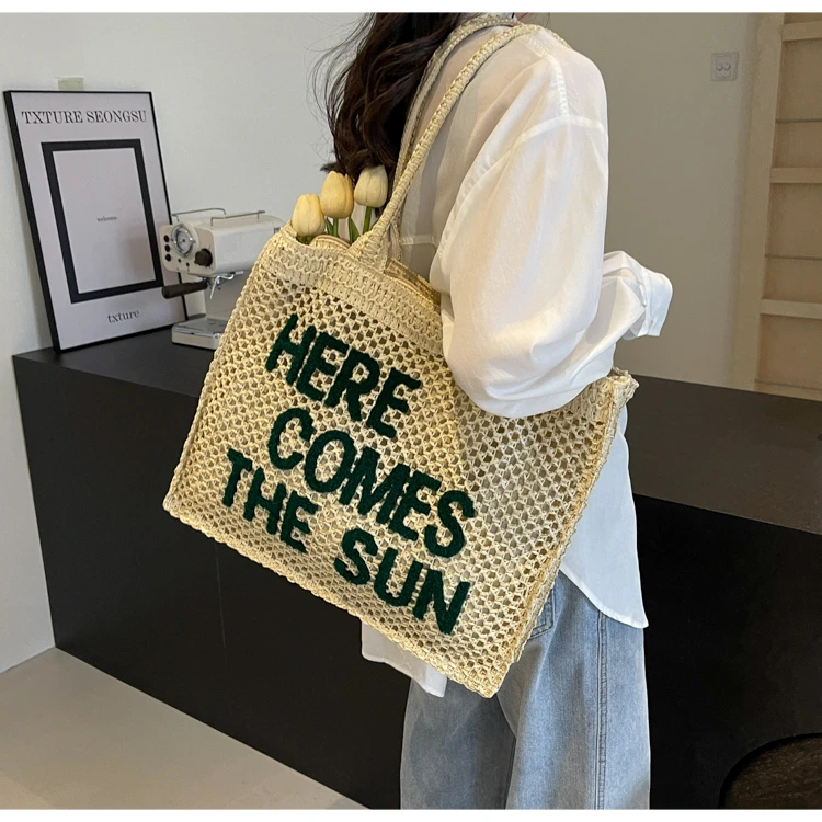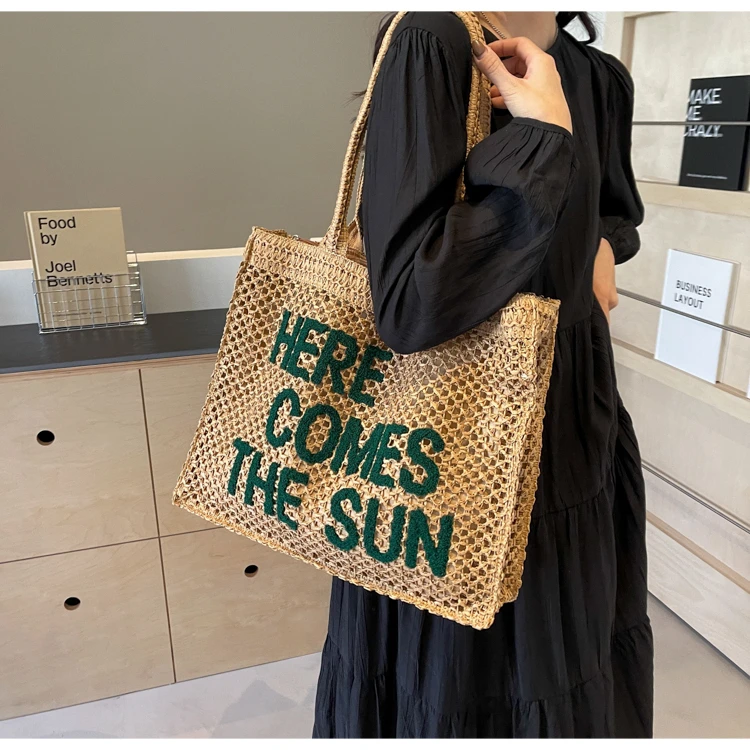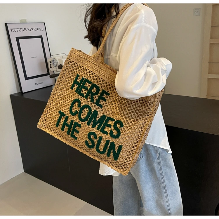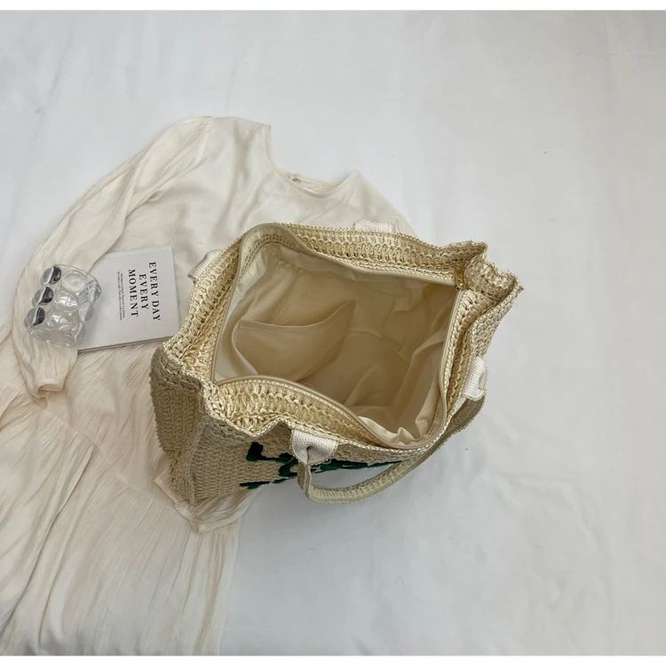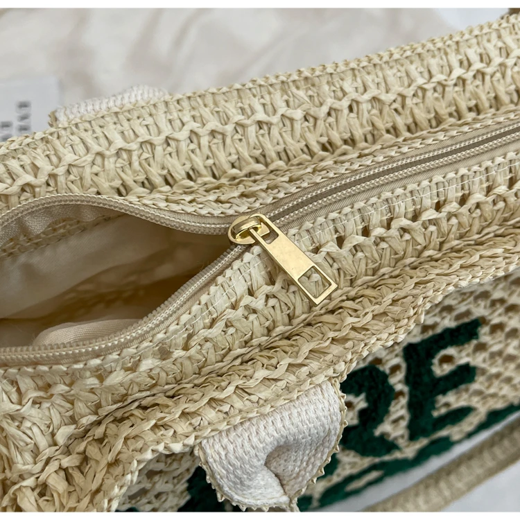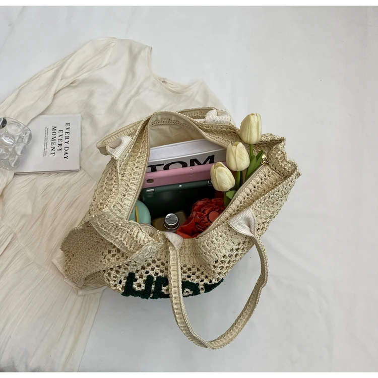 Victoria Vogue Large Capacity Straw Braid Tote Bags 2024 High Quality New Style Zipper Solid Letter Casual Shoulder Bags for Women Bolso Mujer