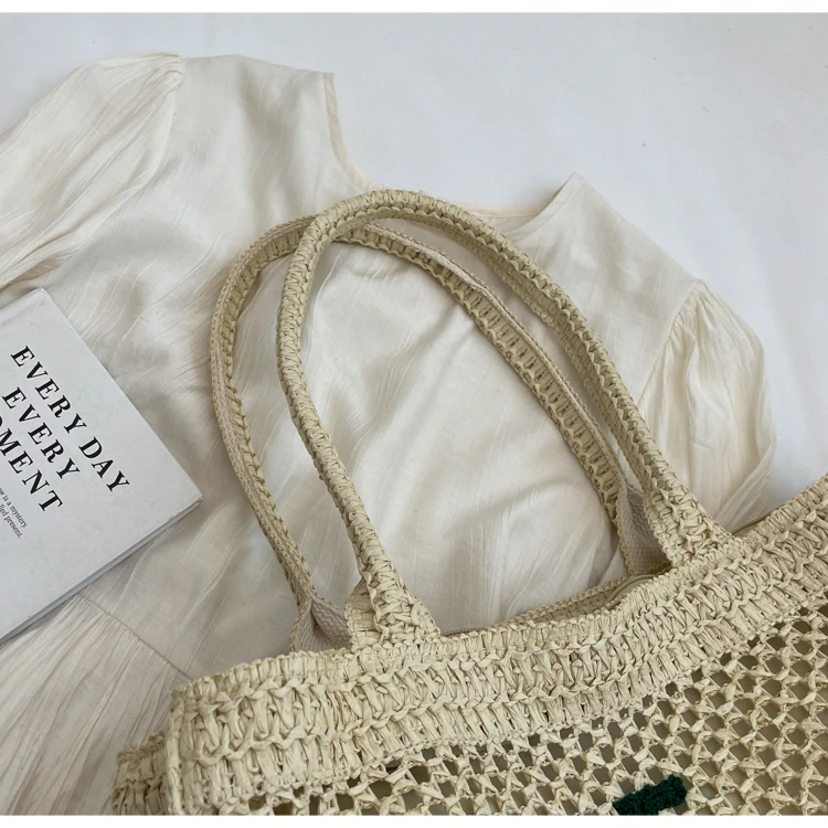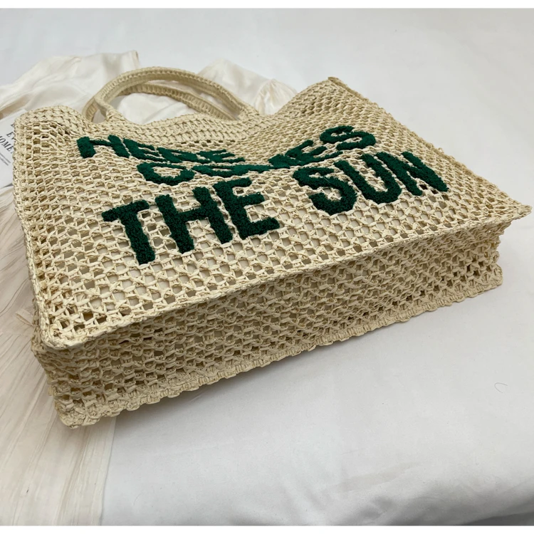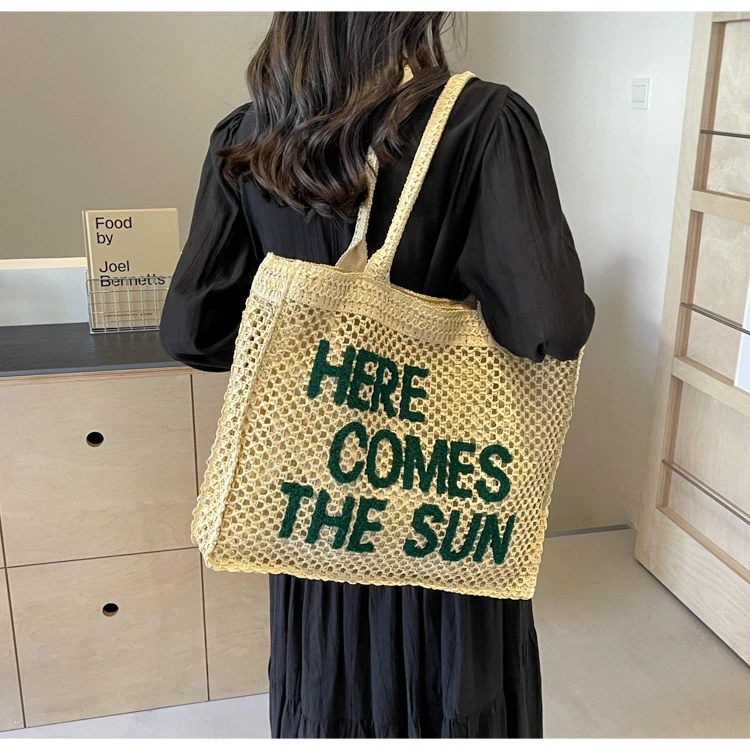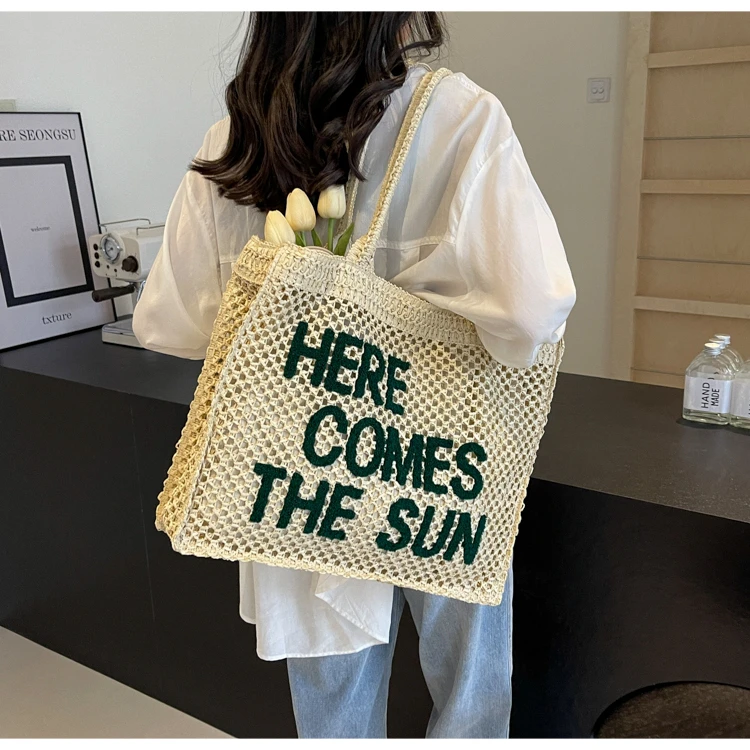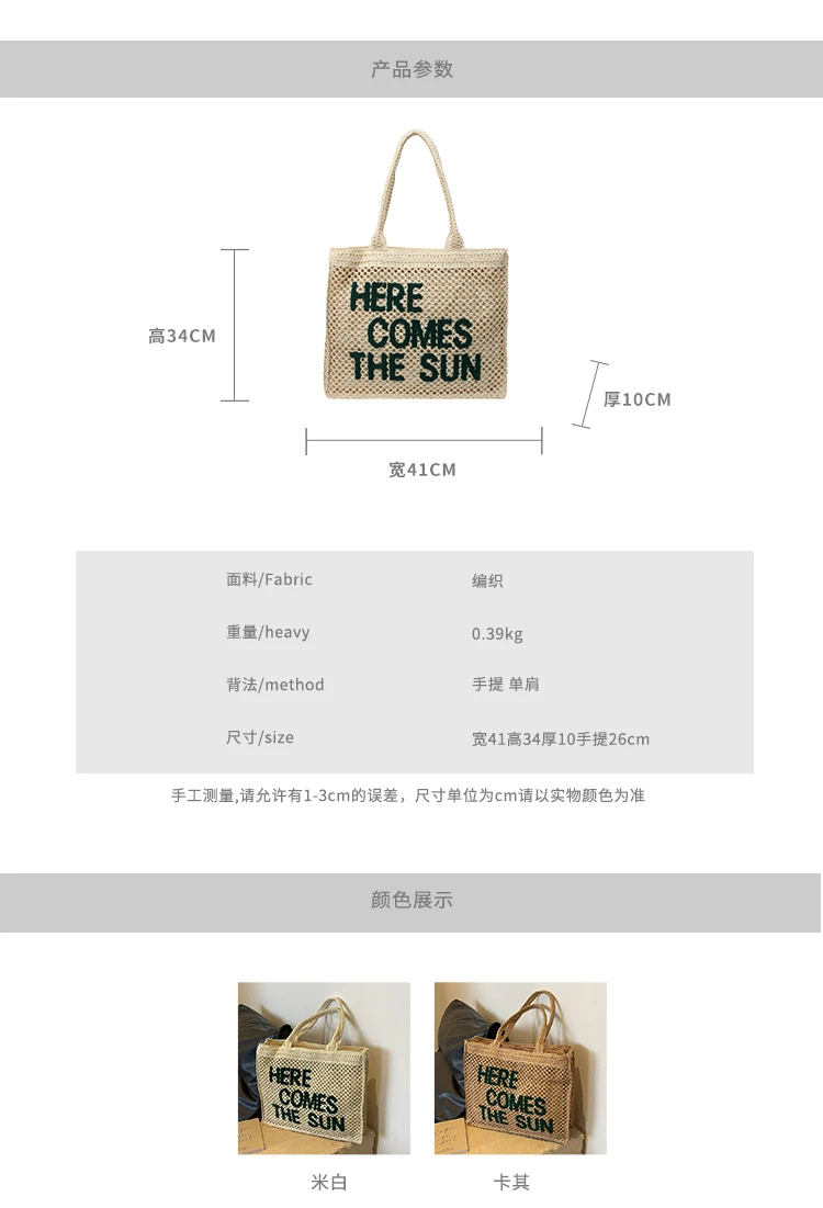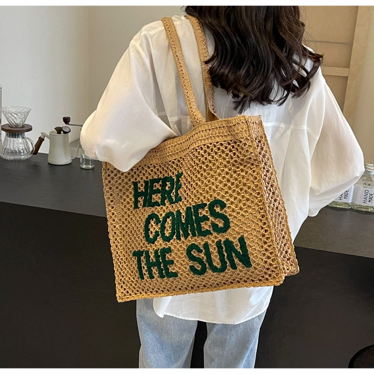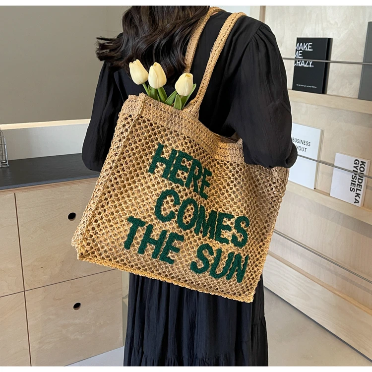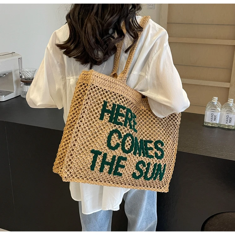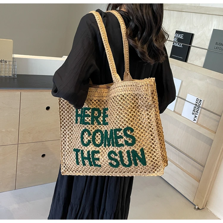 Victoria Vogue Large Capacity Straw Braid Tote Bags 2024 High Quality New Style Zipper Solid Letter Casual Shoulder Bags for Women Bolso Mujer