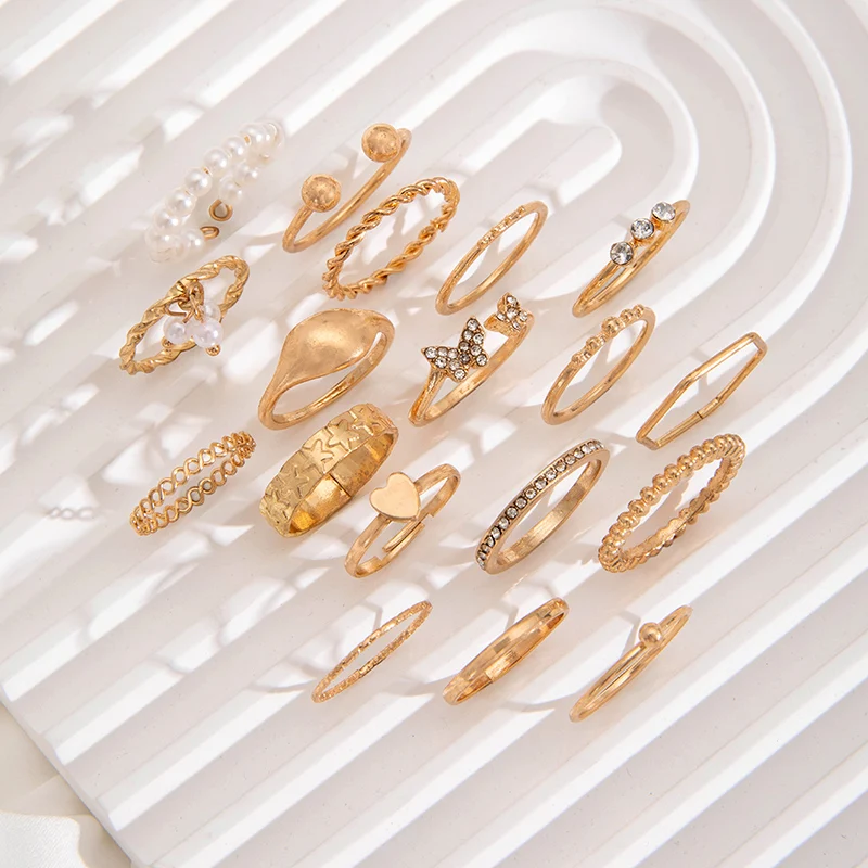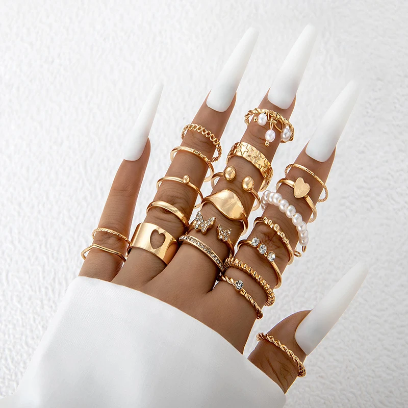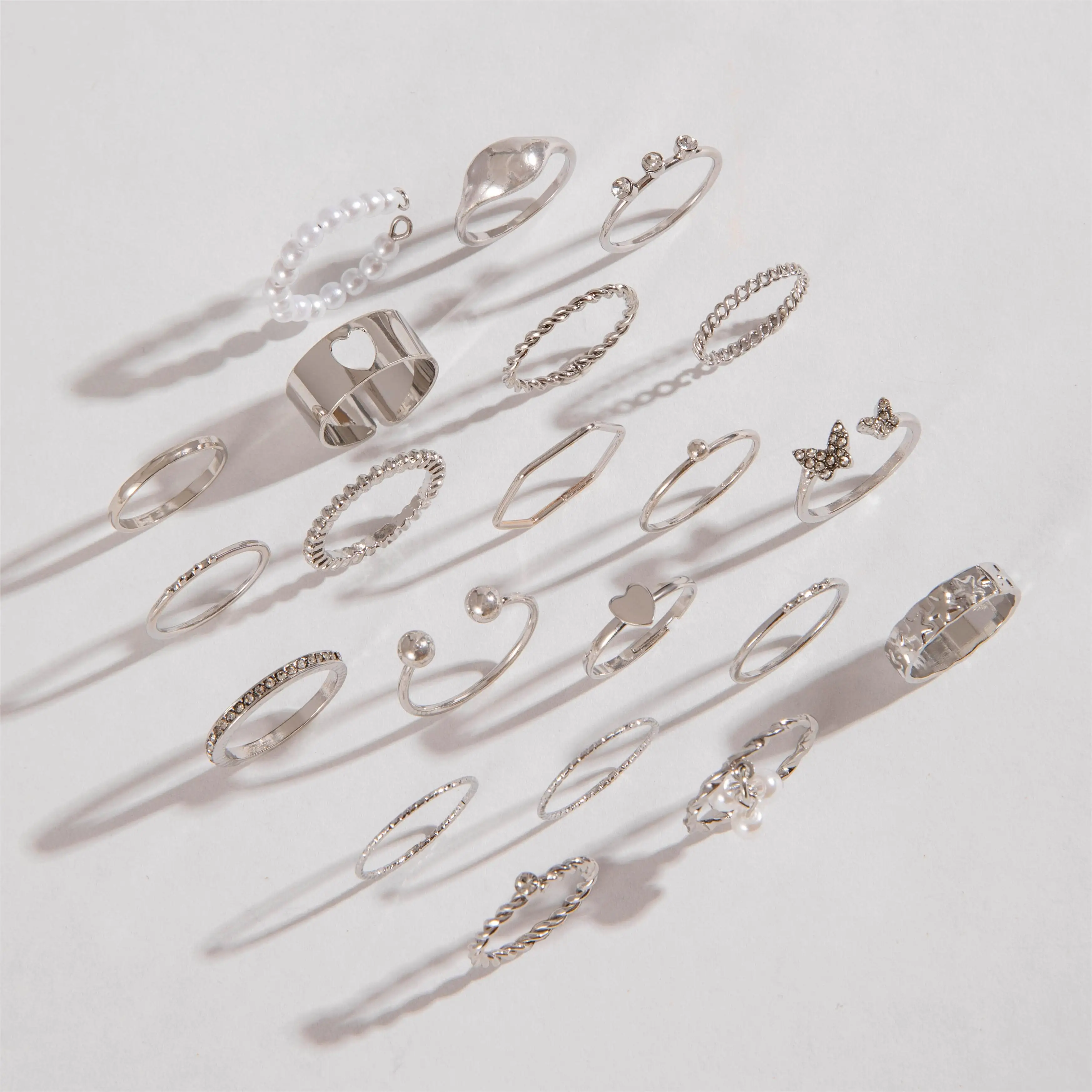 Victoria Vogue Luxury Classic Heart Pearl Rings Set for Women Butterfly Crystal Stone Geometric Alloy Metal Party Jewelry Anillos