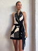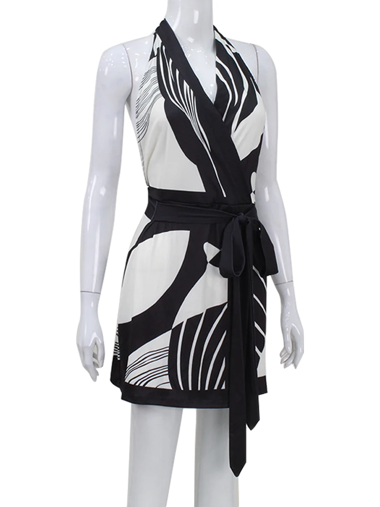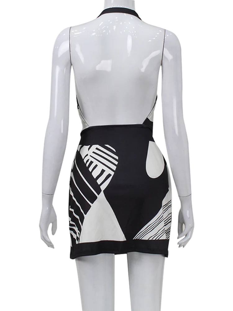 Victoria Vogue Sexy Club Print A-Line Dress Women Fashion Halter Lace-Up Backless V-neck Slim Sheath Sleeveless Vestidos Robe Bodycon