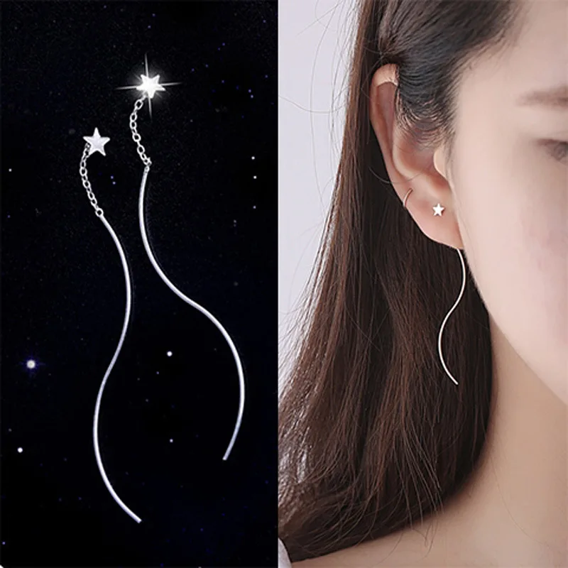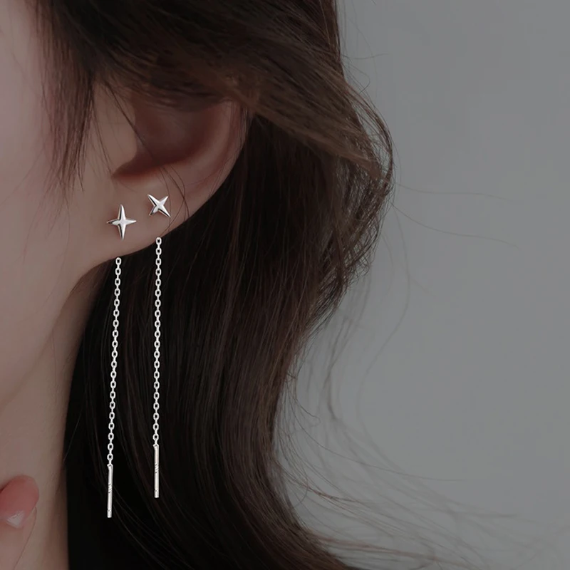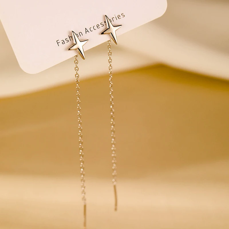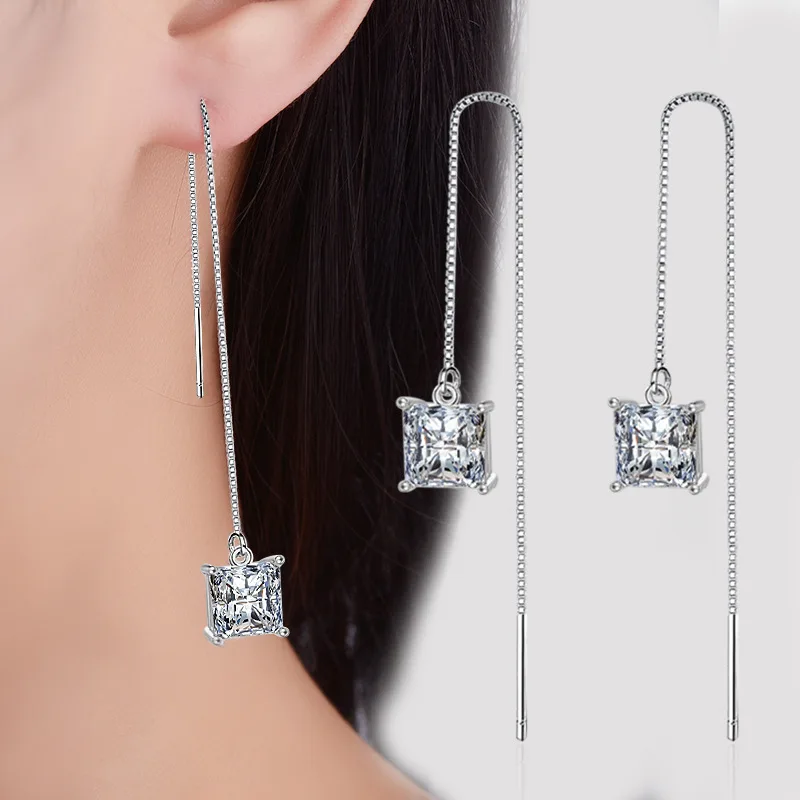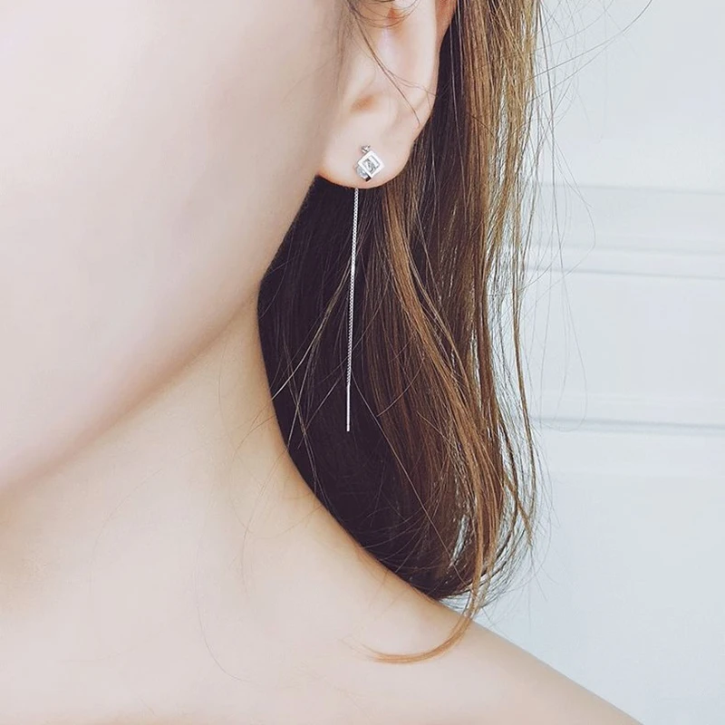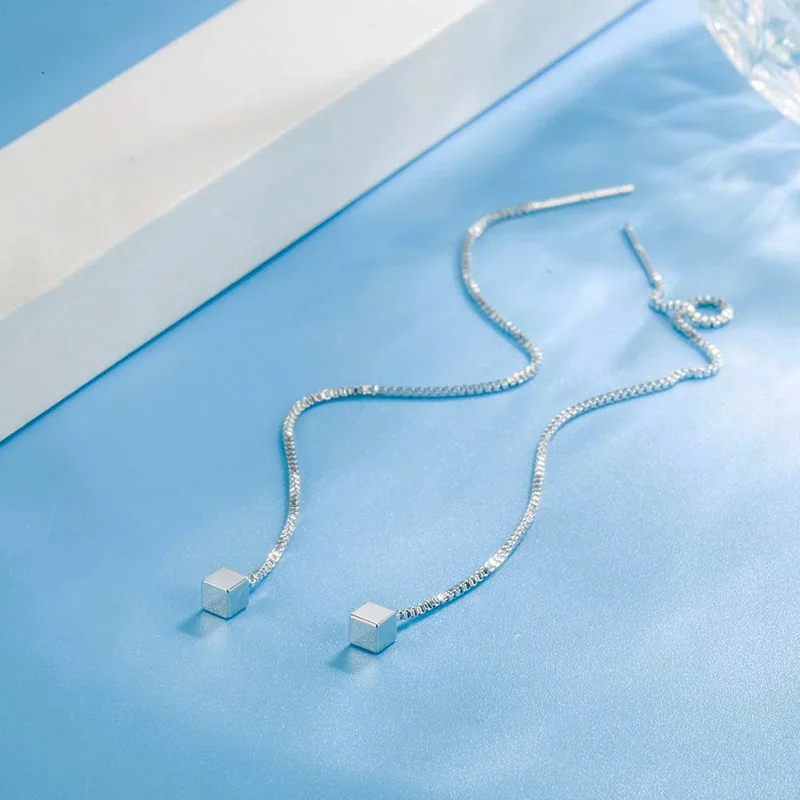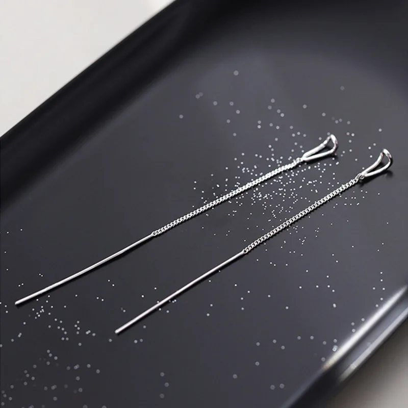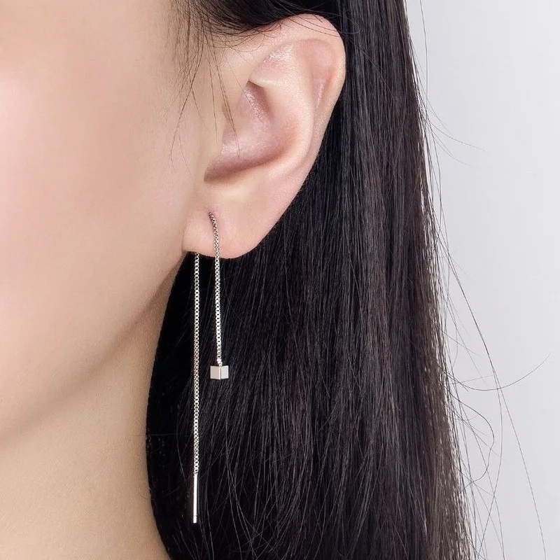 Victoria Vogue Simple Style Box Chain Tassel Drop Earrings For Women Long Dangle Earring Piercing Line Accessories Thin Mini Trendy Ear Jewelry