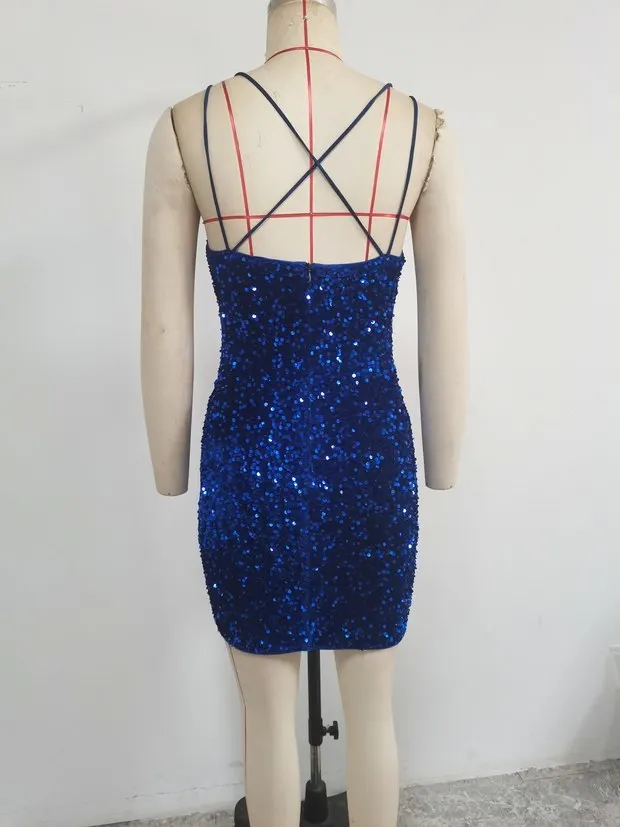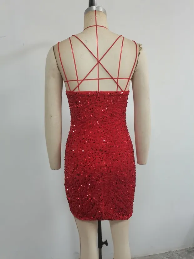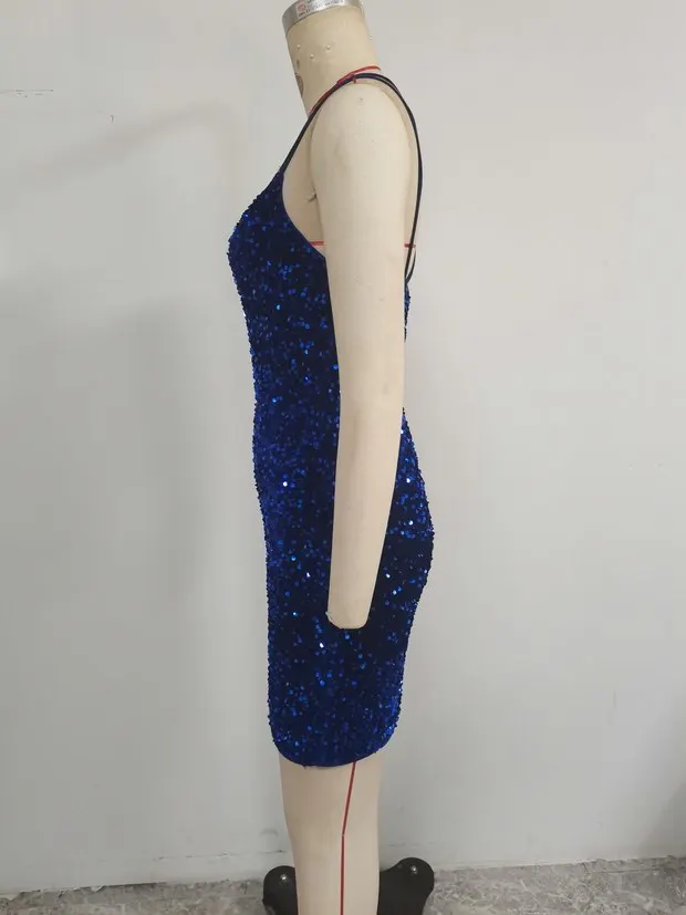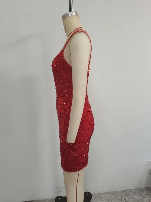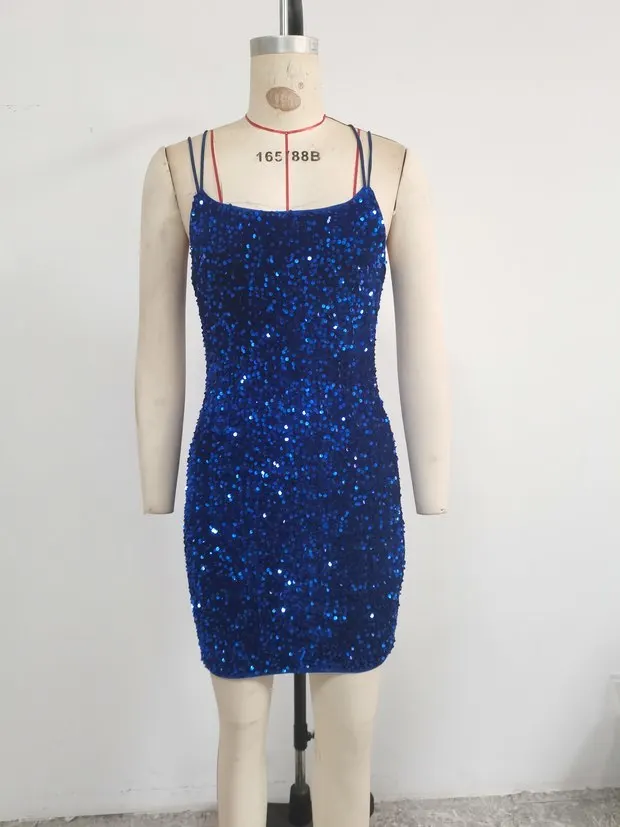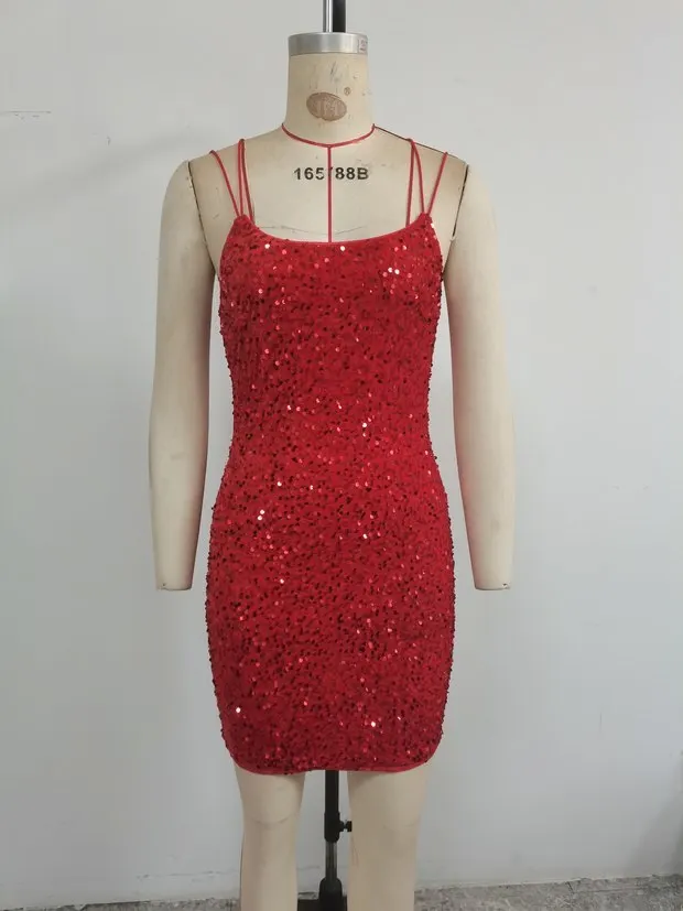 Victoria Vogue Solid Cami Suspender Backless Dress Sequin Party Elegant Summer Bodycon Dress