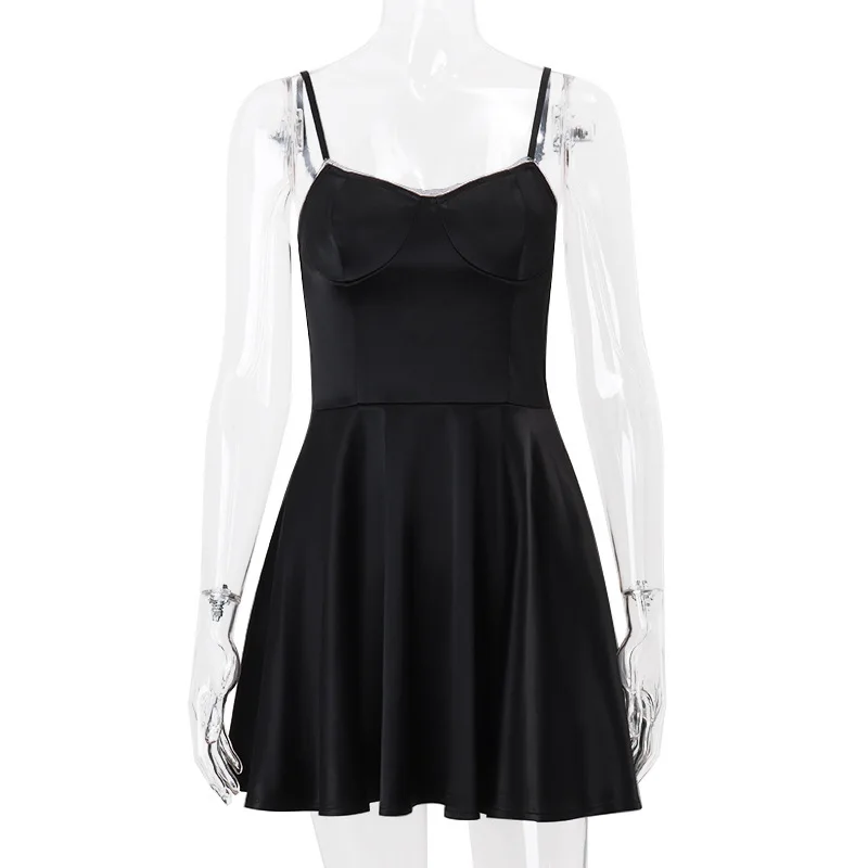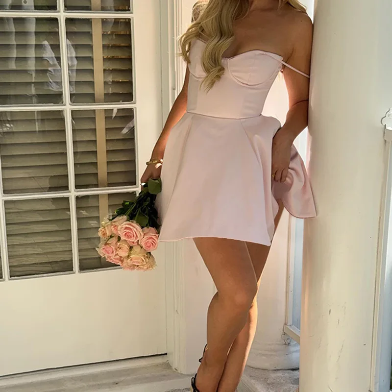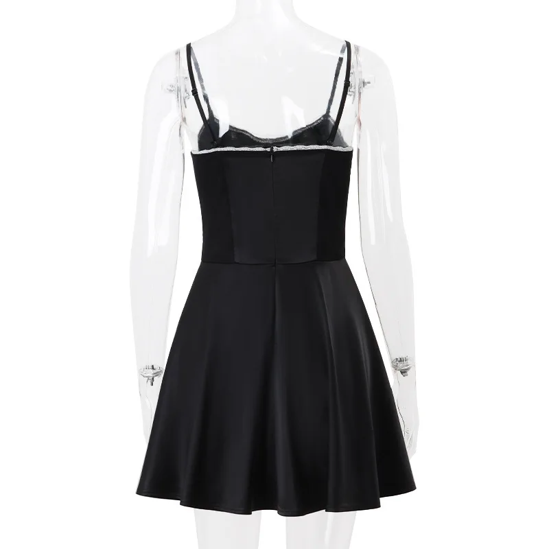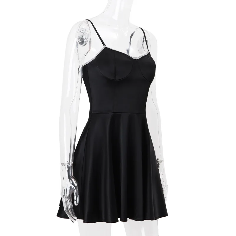 Victoria Vogue Spaghetti Strap Sleeveless A-line Mini Dress For Women Fashion Zipper V Neck Backless Club Party Sexy Short Dress