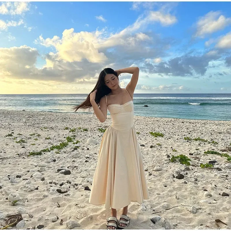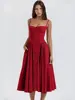 Victoria Vogue Summer Women Elegant Sleeveless Backless Pleated Dresses Lady Sexy Solid Sling Midi Dress 2024 Female Party Evening A-line Robes