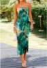 Victoria Vogue Summer Women Sexy Chestless Hem Slit Sleeveless Printed Dress