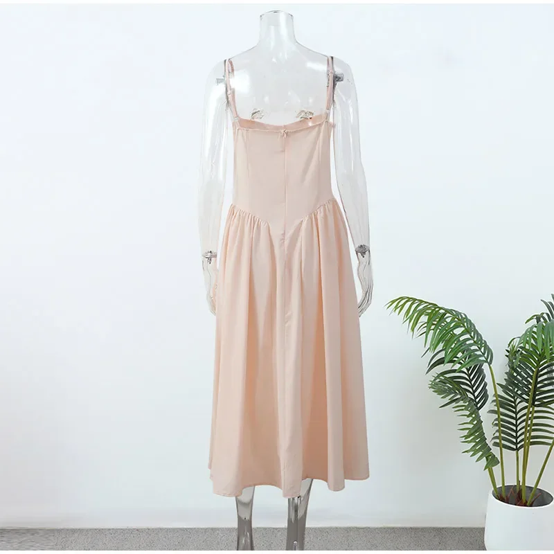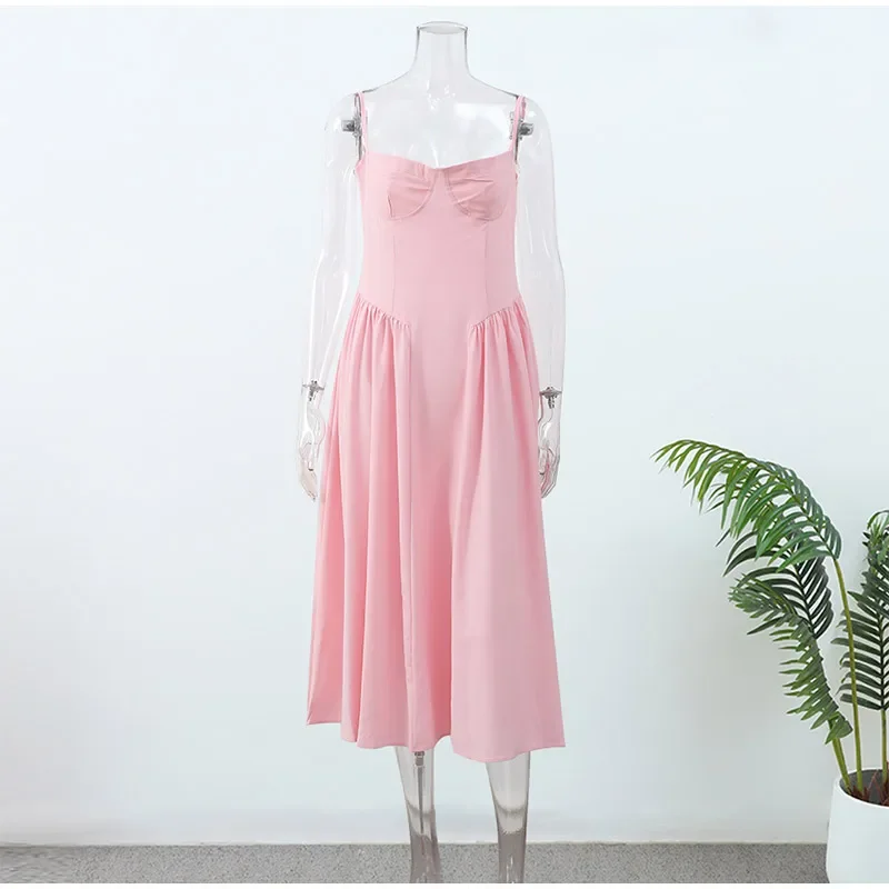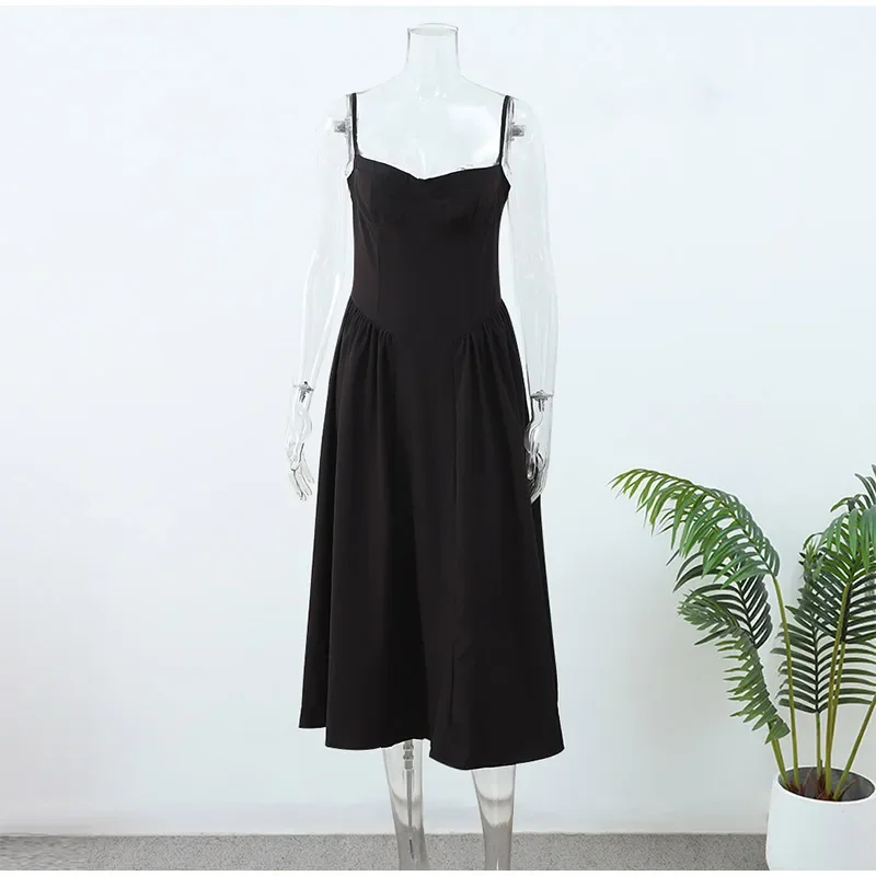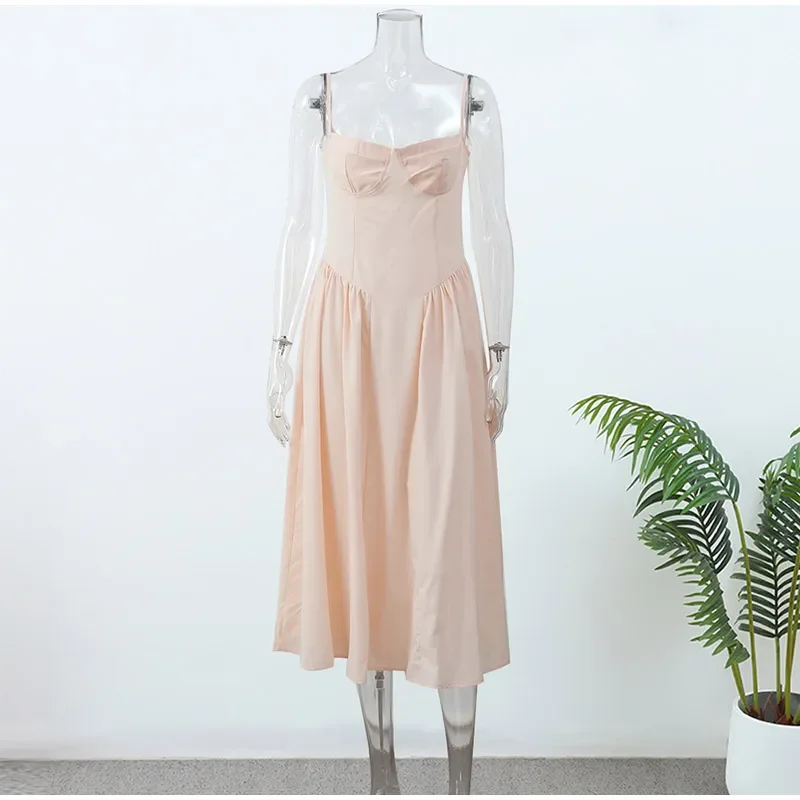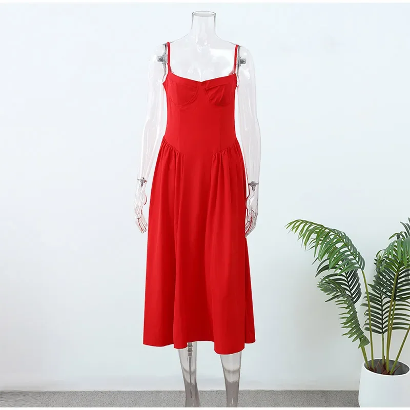 Victoria Vogue Summer Women Spaghetti Strap Solid Midi Dress Elegant Backless Sleevelss Large Hem A-line Dresses 2024 Lady Party Evening Robes