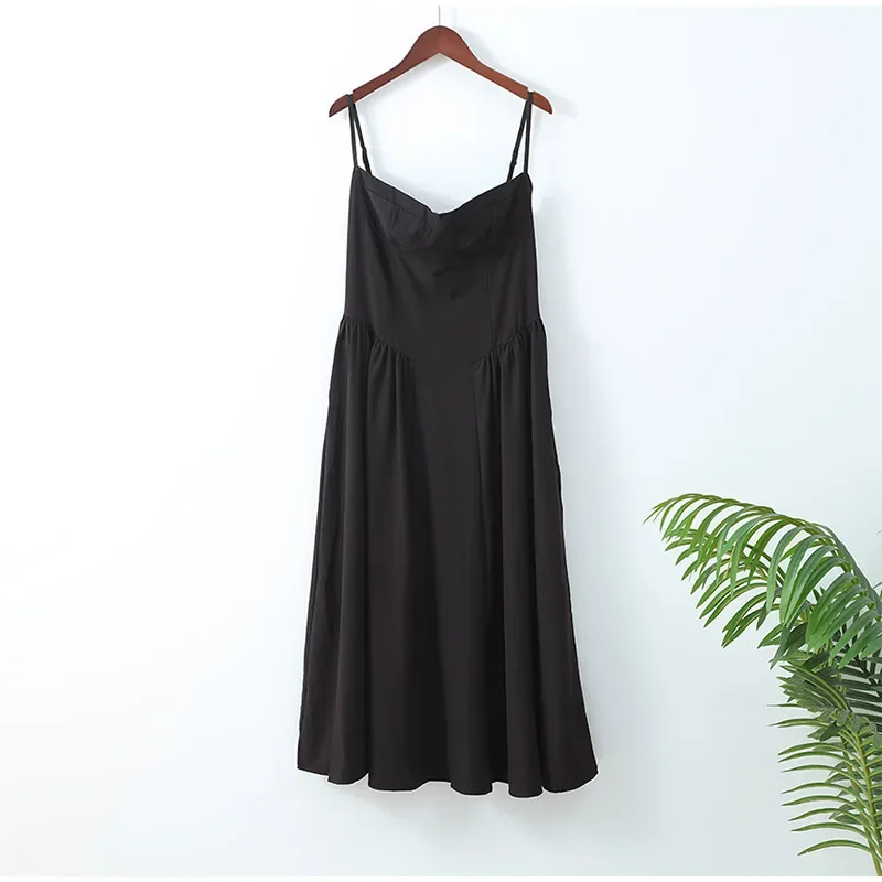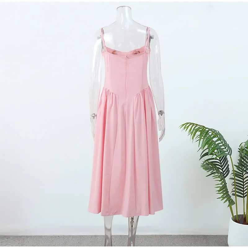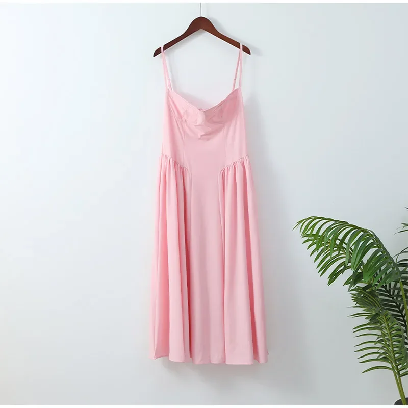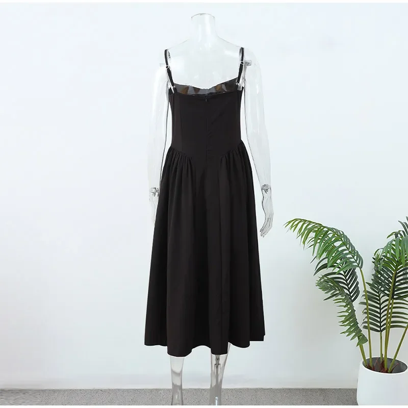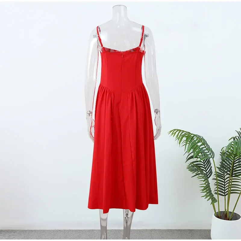 Victoria Vogue Summer Women Spaghetti Strap Solid Midi Dress Elegant Backless Sleevelss Large Hem A-line Dresses 2024 Lady Party Evening Robes
