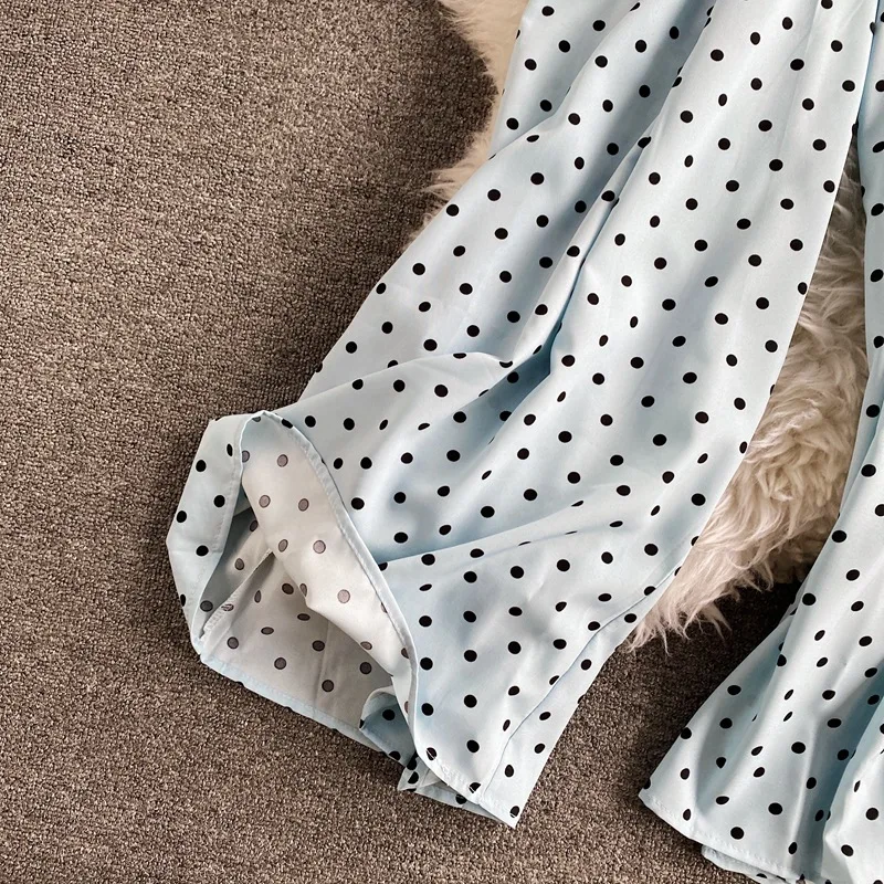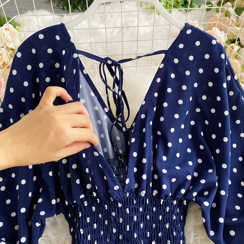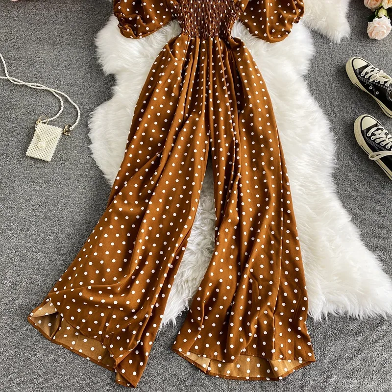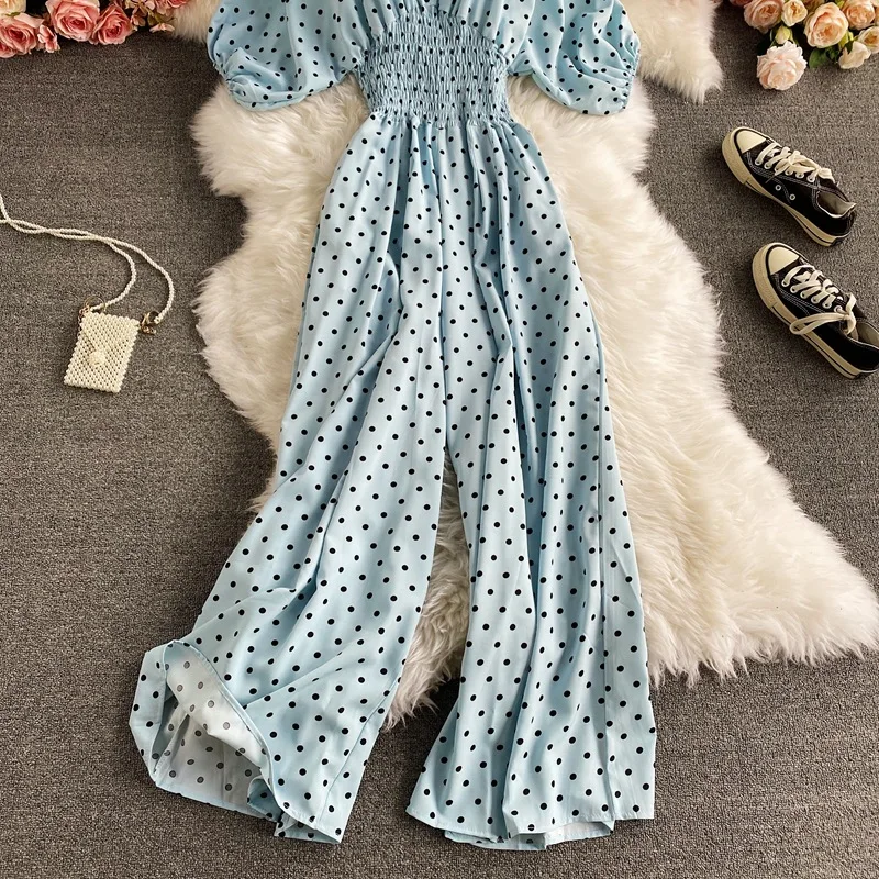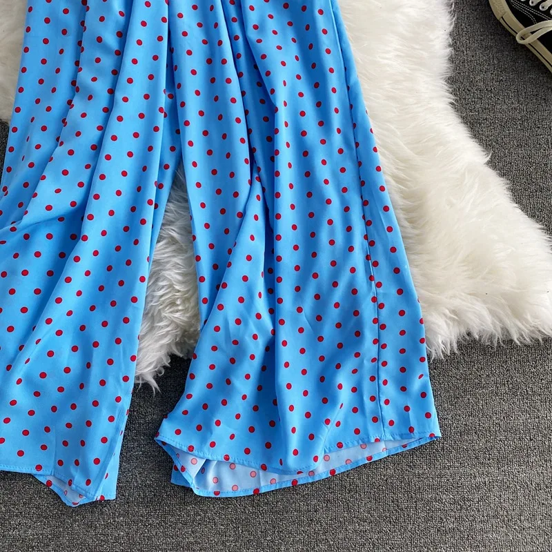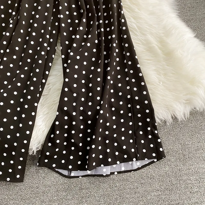 Victoria Vogue V Neck Sexy Dolman Sleeves Waist Slim Polka Dot Print Jumpsuit Women Wide Leg Trousers Jumpsuit