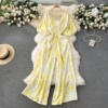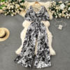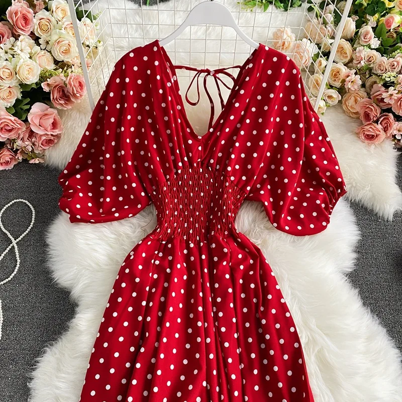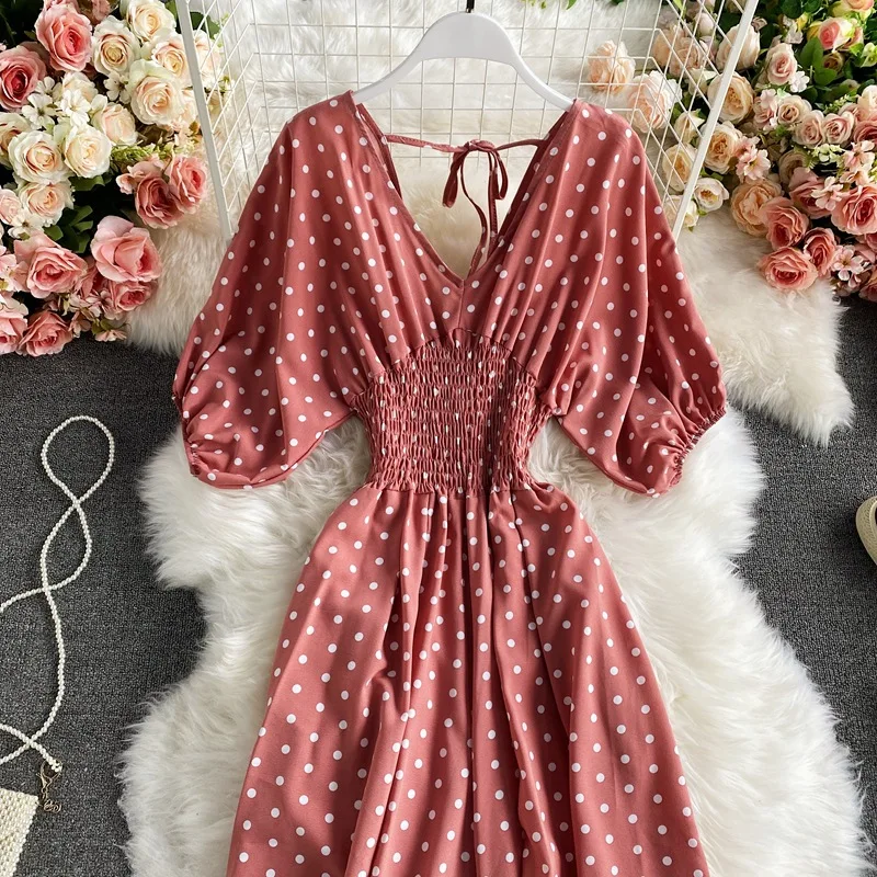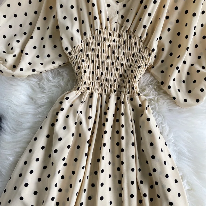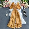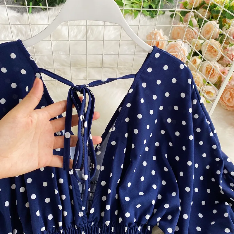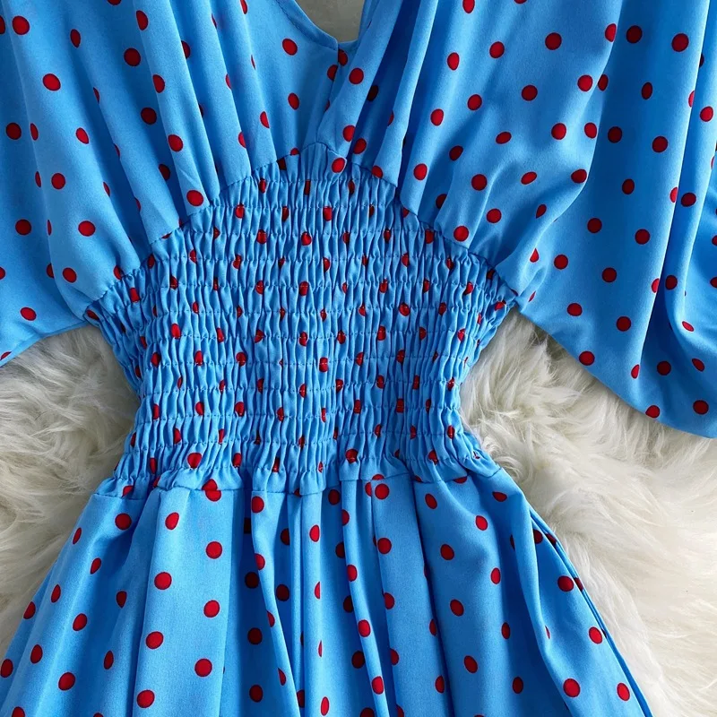 Victoria Vogue V Neck Sexy Dolman Sleeves Waist Slim Polka Dot Print Jumpsuit Women Wide Leg Trousers Jumpsuit