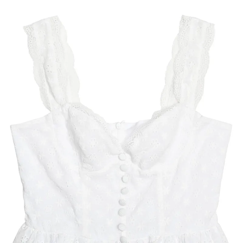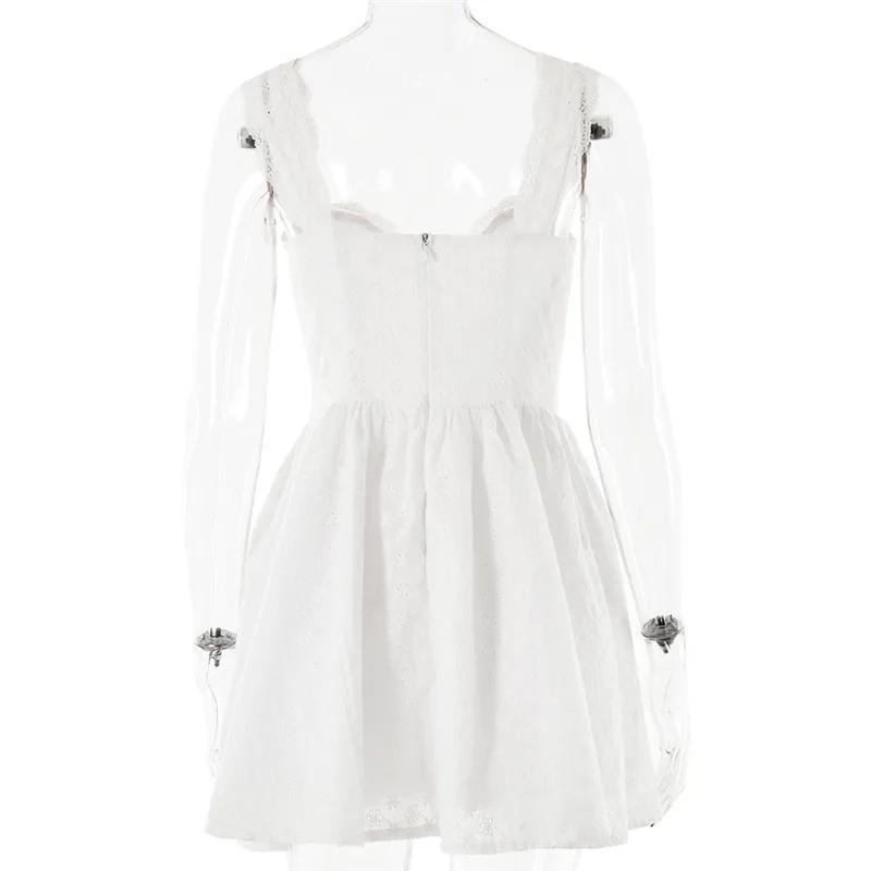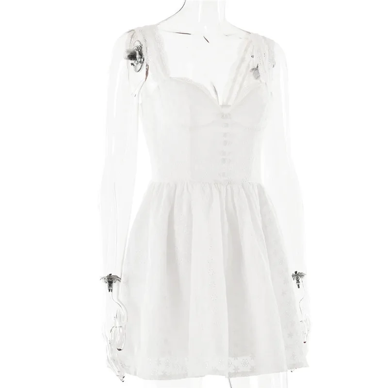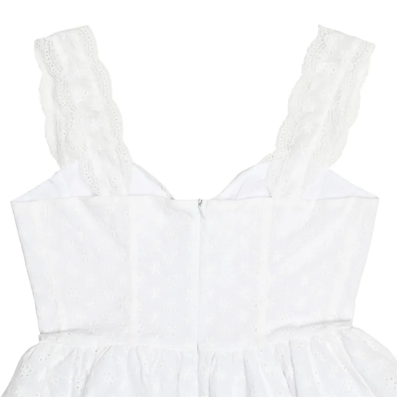 Victoria Vogue White English Embroidered Belted Mini Dress For Women Fashion V Neck Sleeveless Backless A-line Club Party Sexy Dress