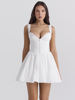 Victoria Vogue White English Embroidered Belted Mini Dress For Women Fashion V Neck Sleeveless Backless A-line Club Party Sexy Dress