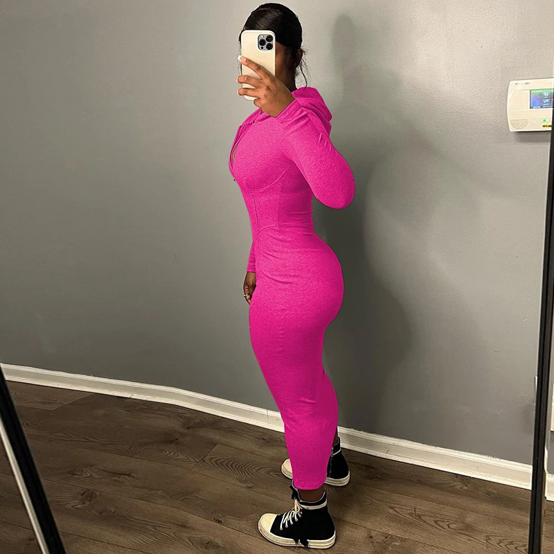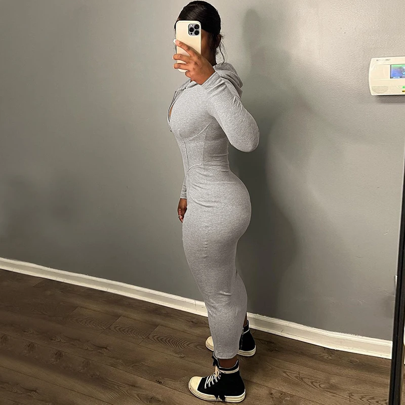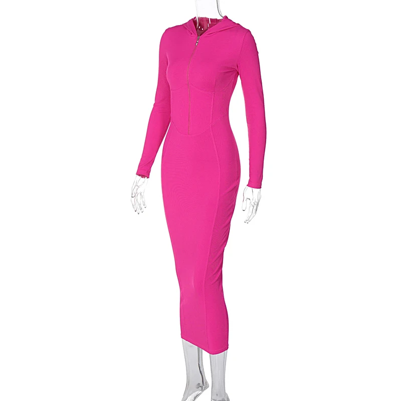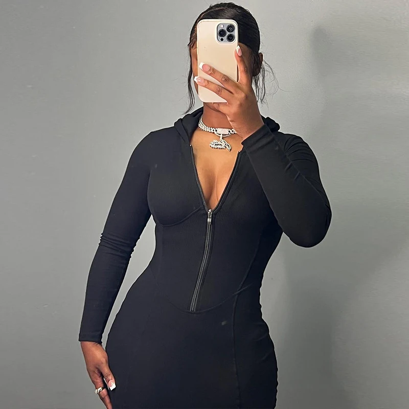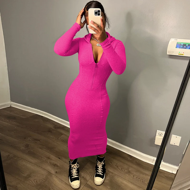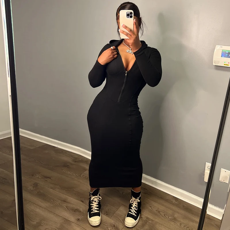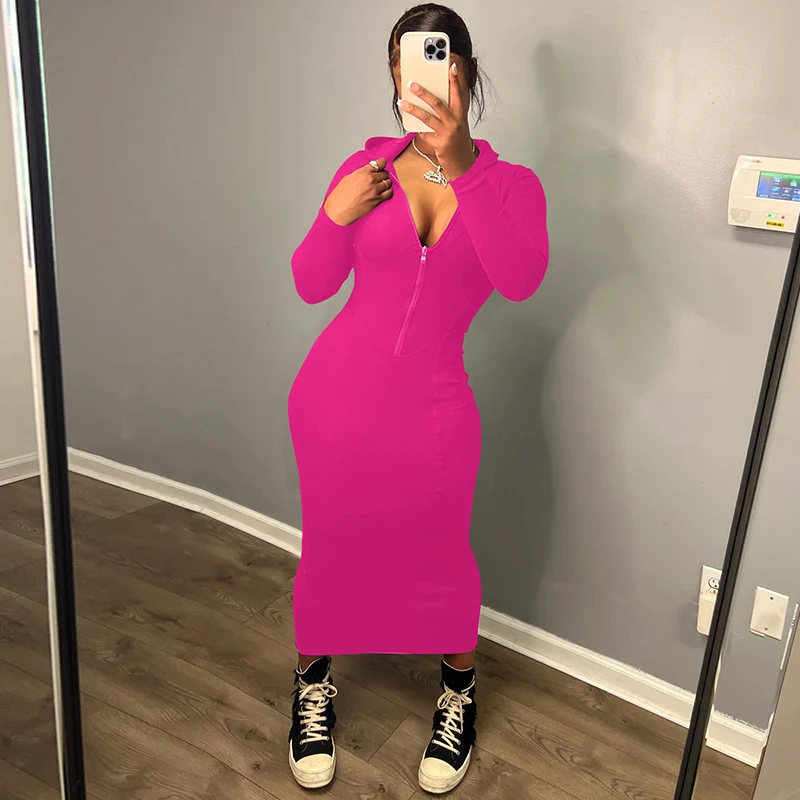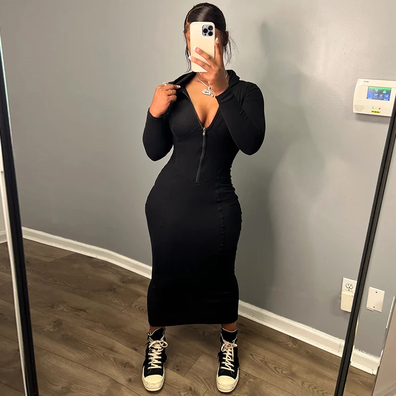 Victoria Vogue Women 2023 Autumn Winter Fashion Long Sleeve Streetwear Bodycon Zipper Midi Dress Wholesale Items For Business