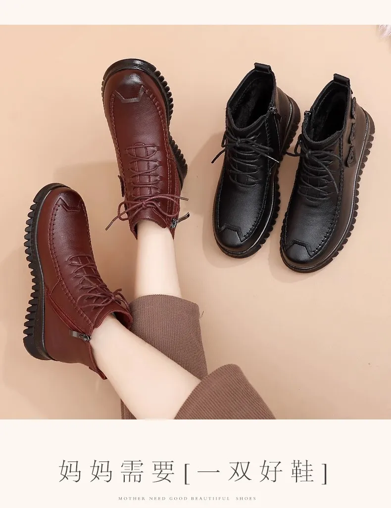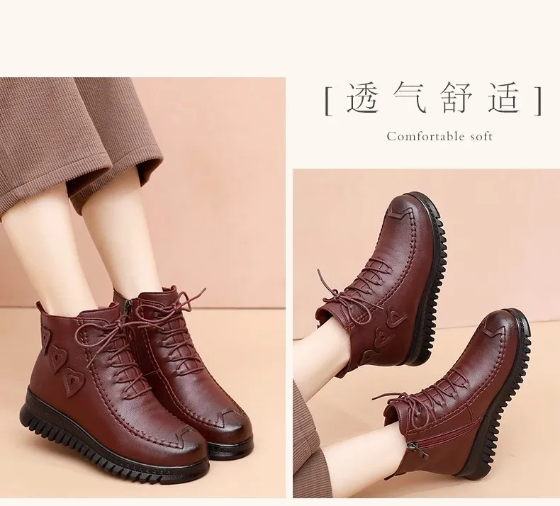 Victoria Vogue Women ankle boots winter 2024 fashion black wine red leather boats waterproof snow shoes for women’s boots