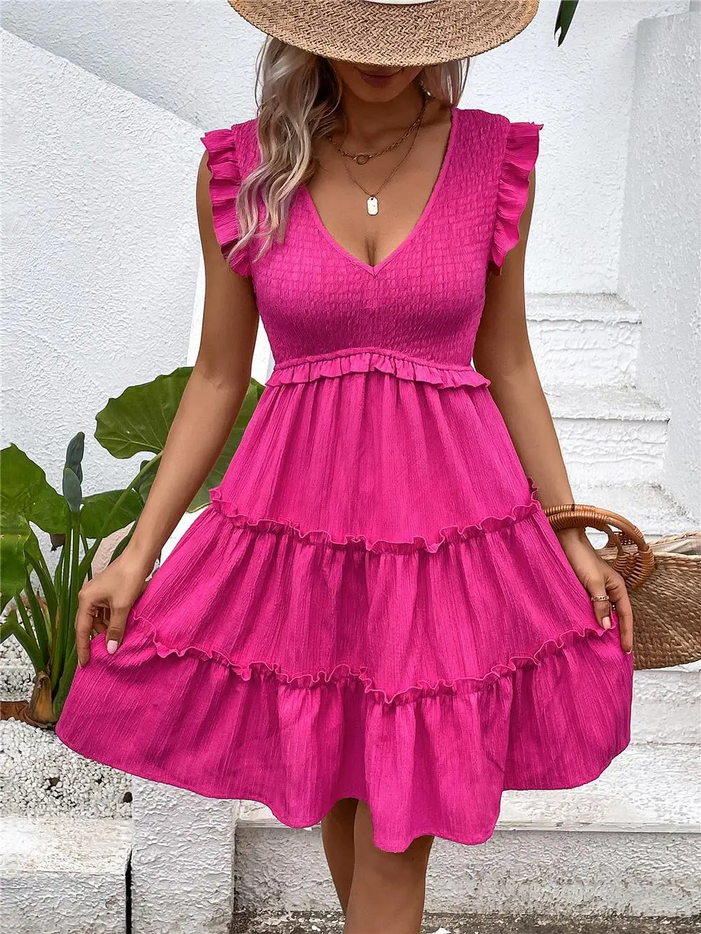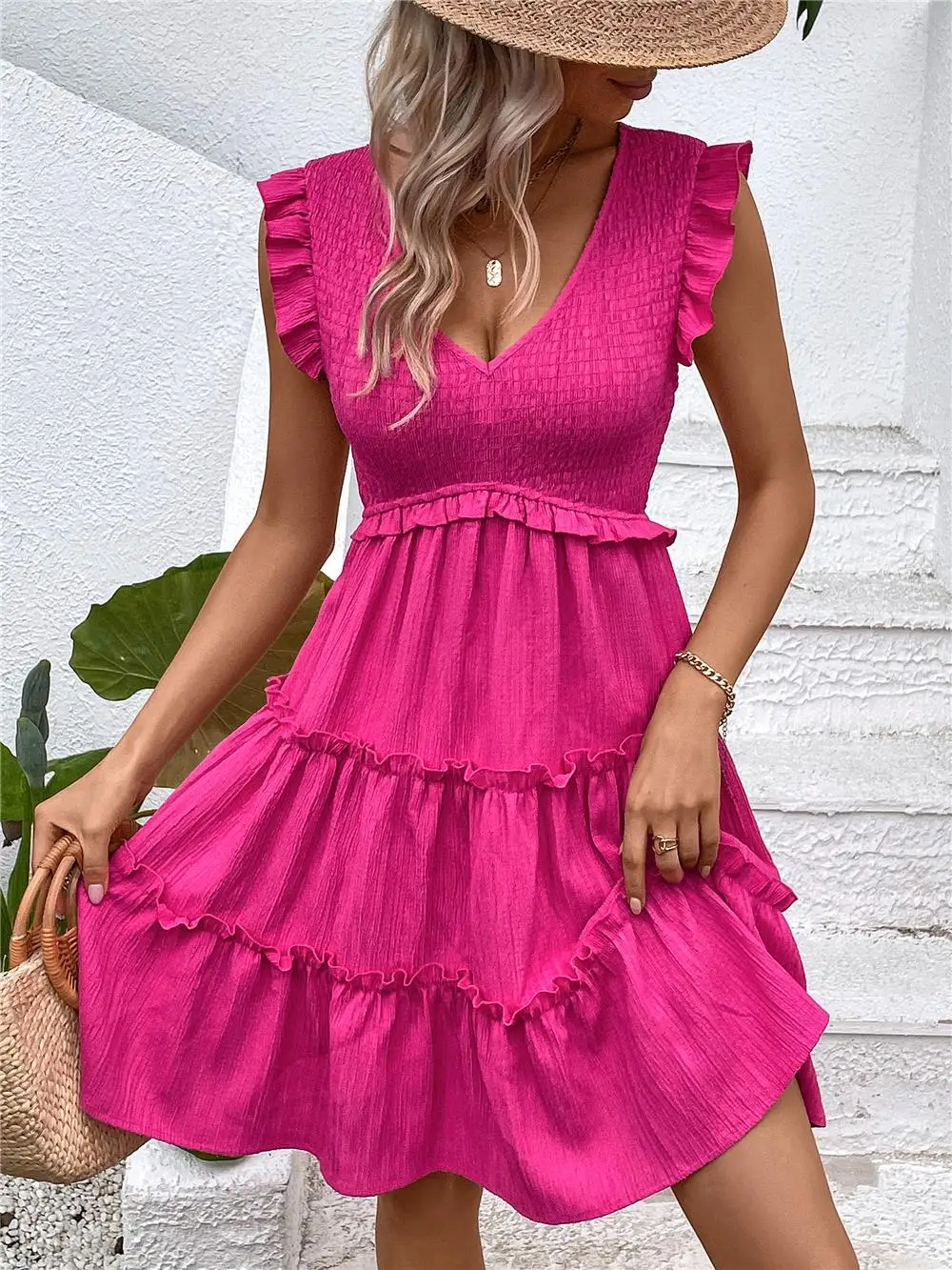Victoria Vogue Women Autumn Winter Fashion Soild Sleeveless Elegant V-neck Casual A-Line Knee-Length High Waist Dress