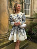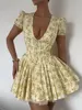 Victoria Vogue Women Fashion Short Puff Sleeve Pleated Dresses Elegant Print Deep V Neck A-line Mini Dress 2024 Chic Lady Party Beach Vestidos