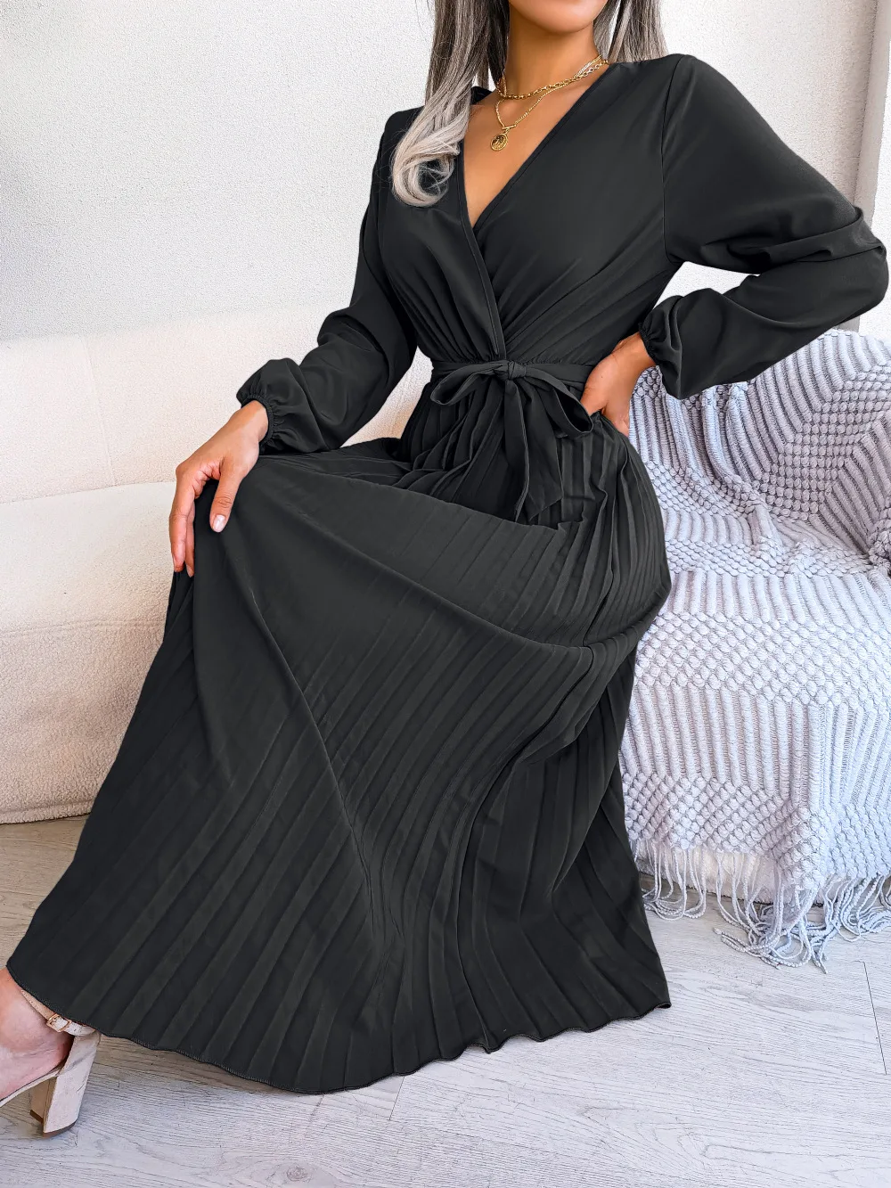 Victoria Vogue Women Spring Summer Cross Solid Color V Neck Large Hem Pleated Long Dress For Fashion