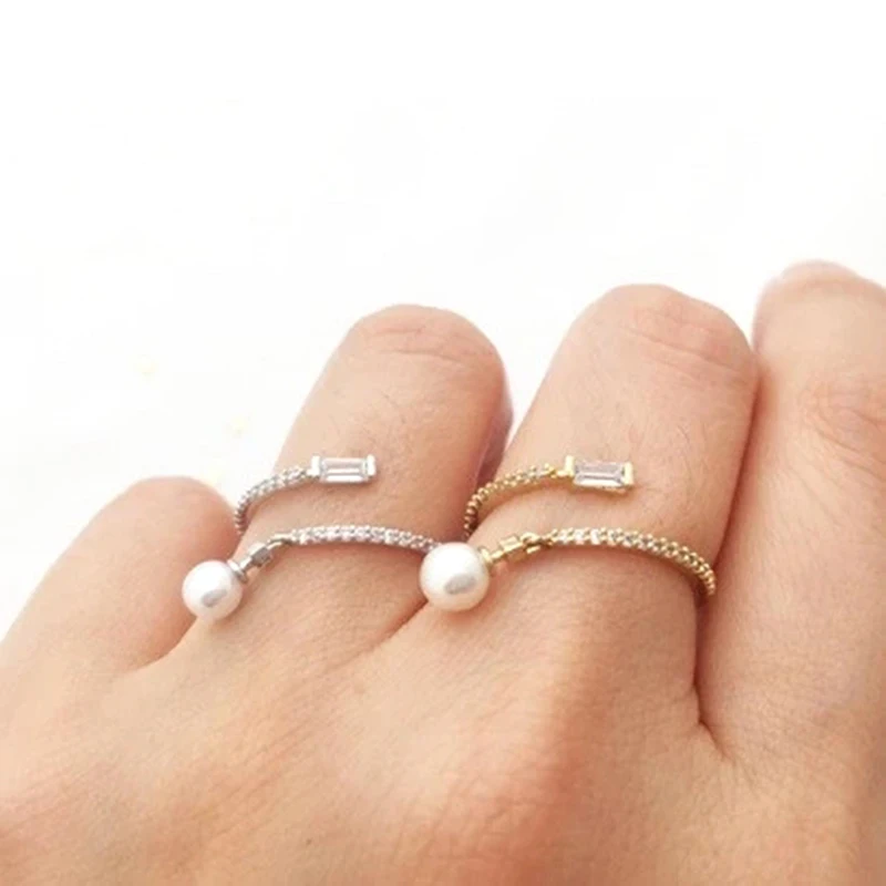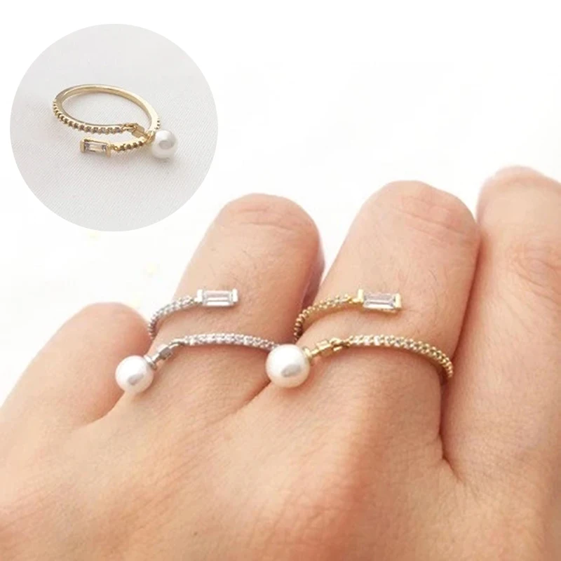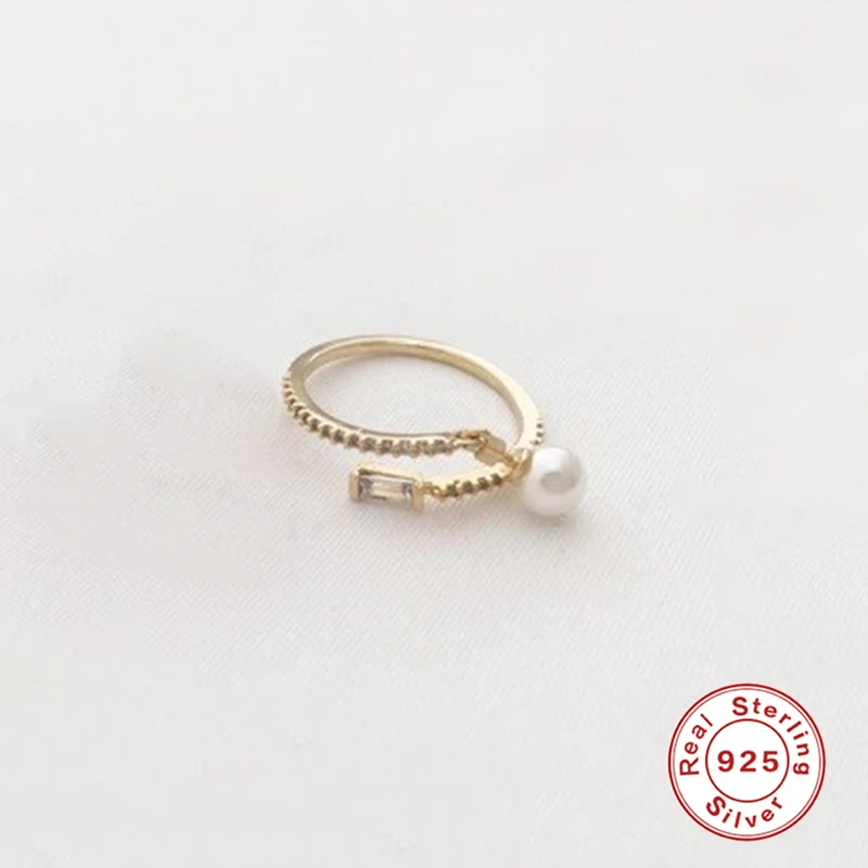 victoria’s vogue 100% 925 Sterling Silver Rings Elegance With White Simulated Pearl Pendant Mini Zircon Crystal Women Open Size Finger Ringictor