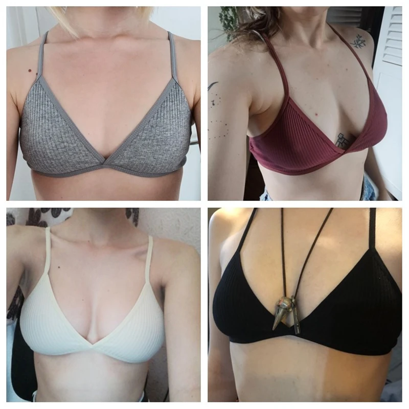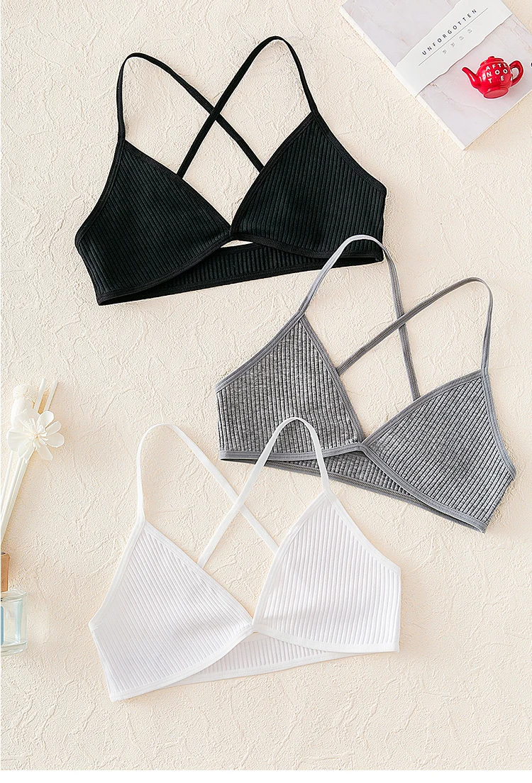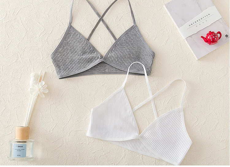 Victoria’s Vogue 2 PCS Comfort Cotton Bra For Women French Style Bralette Deep V Triangle Cup Brallette Wireless Lingerie Push Up Bras