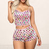 Victoria’s Vogue 2 Pieces Pajamas Women Butterfly Printed Soft Sexy Nightwear Suit Lace Lingerie Set Pleated Sleepwear Sets Lady Top+Loose Shorts